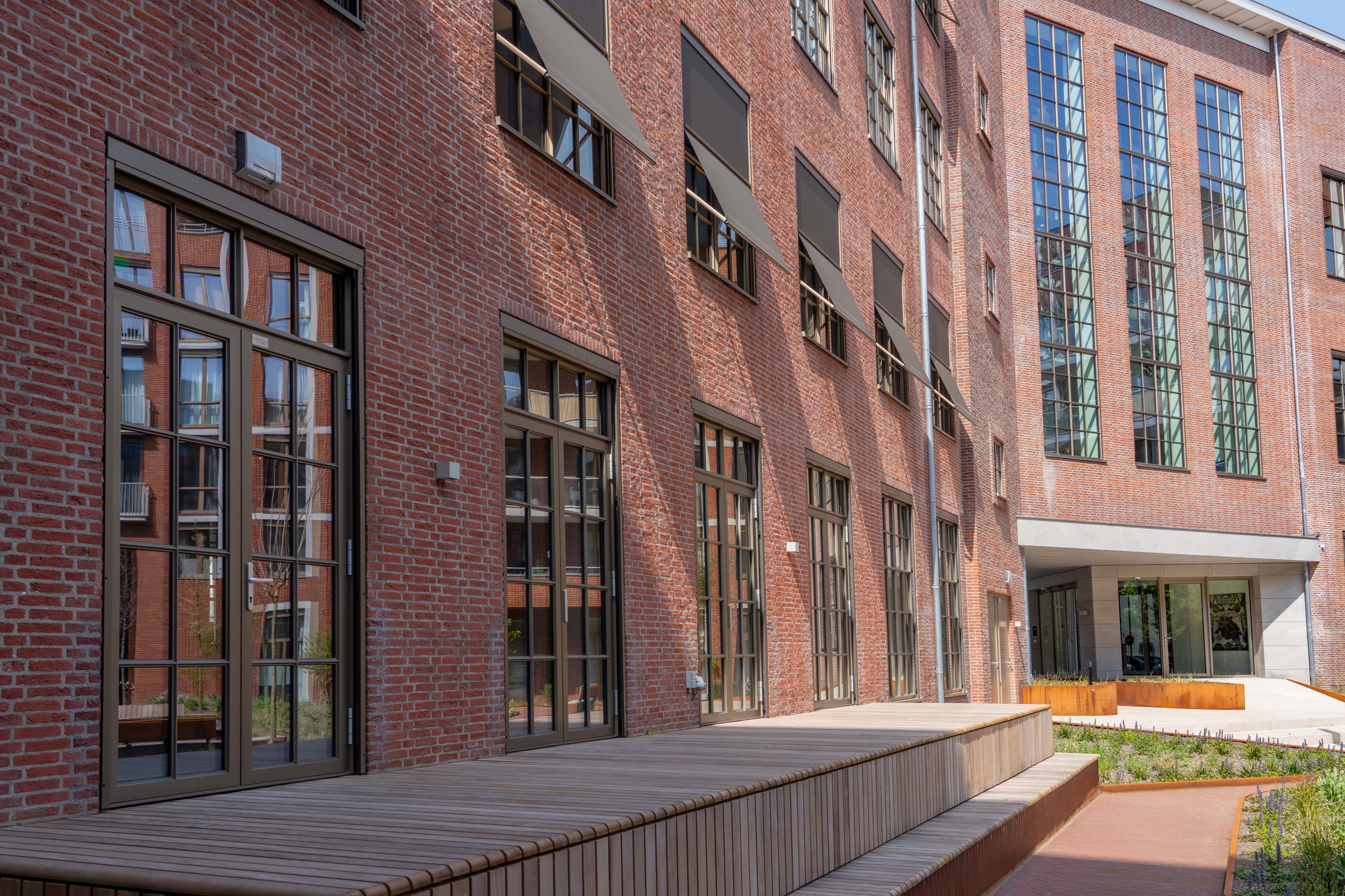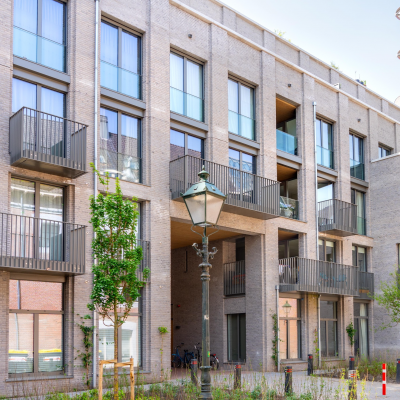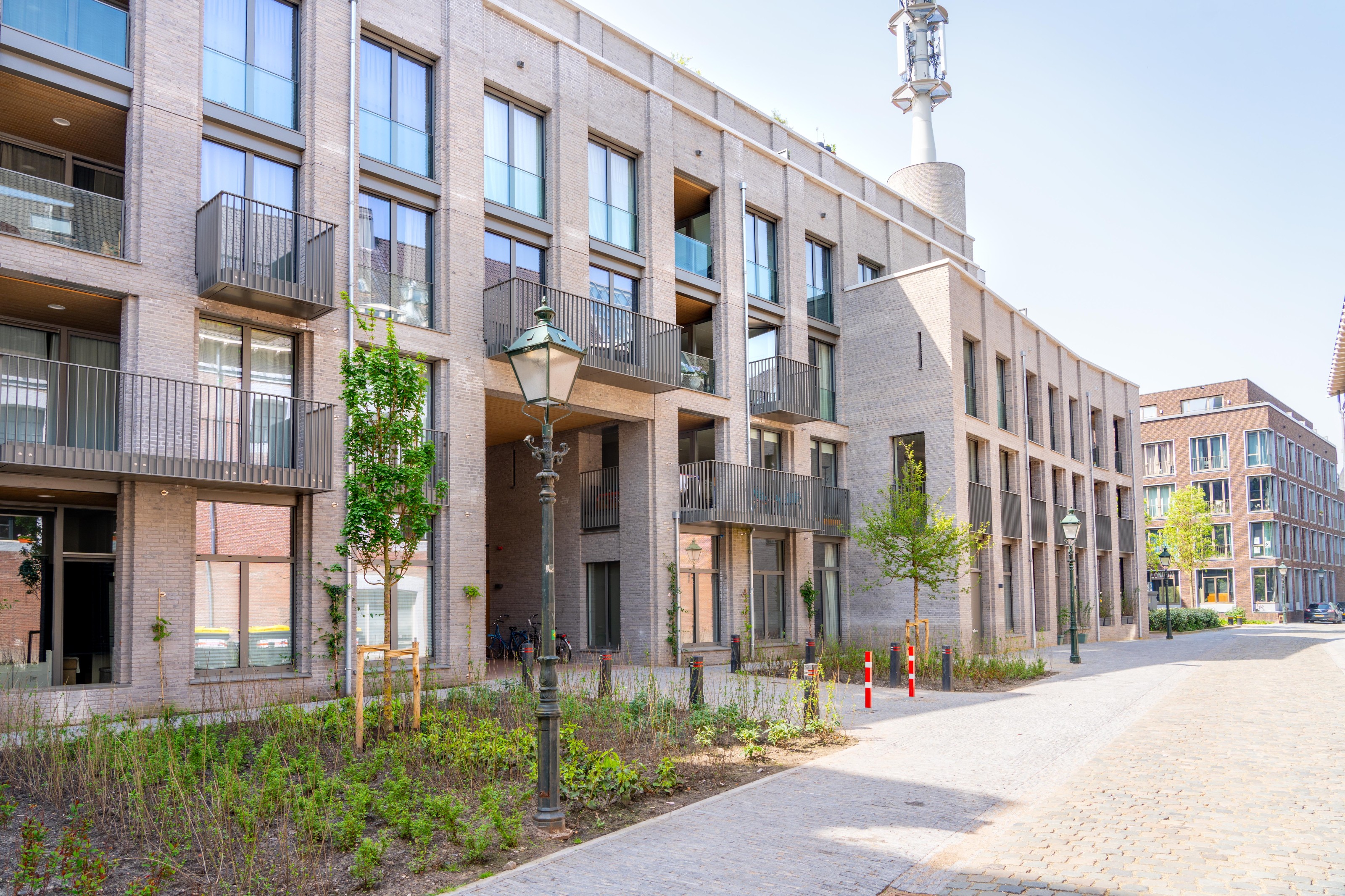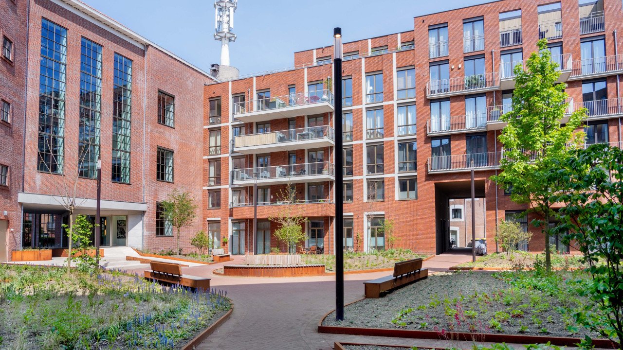 Drie architecten, drie bouwdelen, één missie: Geef de binnenstad een stuk kwalitatieve bouw en leefbaarheid terug. Waar vanaf de jaren veertig de telefoons rinkelden, nip je nu een wijntje in Californische sferen of woon je aangenaam met uitzicht op een groene binnentuin. Sjim van Beijsterveldt (Bedaux de Brouwer Architecten), Bert Voss (Voss Architecture) en Geert Bosch (HILBERINKBOSCH Architecten) werkten ieder aan een eigen onderdeel van het verouderde gebouw. Zo bestaat het grote Zuidblok uit nieuwbouw van 158 middensegment- en vrijesectorhuurwoningen. Medewerkers van L - founders of loyalty vinden hun hoofdkantoor in het Middenblok. Het Noordblok biedt ruimte aan 62 huurappartementen. Bosch ontwierp het Noordblok in opdracht van projectontwikkelaar Boelens de Gruyter en was vanaf het begin betrokken bij het project. Hij blikt terug. “Het Noordbrabants Museum, de kazerne, kantoorpanden en woningen omsluiten het gebied. Daar waar je uitkijkt op de achterzijde van de woningen was het nodig om een stuk kwaliteit toe te voegen. We besloten het Zuidblok rondom een binnentuin te vouwen. De buitenschil moest wel passen binnen het Bossche straatbeeld. Op hoeken, knikpunten en pleintjes speelden wij met de volumes en hoogtes zodat er verschillende aanzichten ontstaan. Deze plek vroeg niet om een nieuw gebouw maar juist om een heel nieuw stuk stad. Dat uitgangspunt hield ik altijd in mijn achterhoofd.”