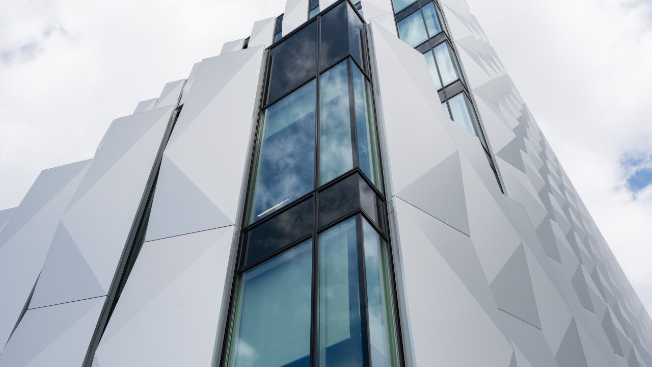 Bij het ontwerp van de gevel gingen gevelbouwer TGM en Reynaers Aluminium niet over één nacht ijs. Om aan de hoge eisen van de opdrachtgever te voldoen, werden de elementen van tevoren uitvoerig getest op de Reynaers Campus in Duffel (België). Reynaers Aluminium leverde de elementgevel. WVH plaatste later de vinnen met de parametrische vormen in alucobond-panelen. Bas Verhulsdonk, commercieel manager TGM vertelt over de totstandkoming. “Uiteindelijk is de gevel technisch uitgewerkt in de vorm van een vliesgevel en elementgevel. De elementgevel bestaat uit bijna 10.000 vierkante meter aan elementen. Deze zijn steigerloos gerealiseerd. Hierdoor konden we de doorlooptijd van het project aanzienlijk verkorten. Hiervoor is het systeem CW65 EF van Reynaers Aluminium gekozen.”