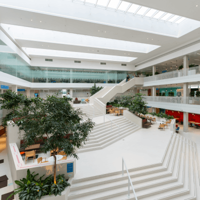 Luiten vult aan: “Onze opdrachtgever wilde vooral snel bouwen. De prefab elementgevel bood hierbij uitkomst. Alle 1024 gevelelementen werden compleet voorgefabriceerd rondom het gebouw heen geplaatst. In feite als een soort legostenen. Het voordeel is dat zo’n gebouw heel snel wind- en waterdicht is. Dat heeft een positief effect op de bouwsnelheid. Het samenspel van de elementgevel en de parametrische elementen is beeldbepalend voor ons ontwerp. Functionaliteit, duurzaamheid en esthetiek komen hier samen. Uiteindelijk maak je een gebouw voor mensen. Het is gelukt om een ontwerp te realiseren met een positieve impact voor de mensen die er werken. Daar doe je het uiteindelijk voor.”