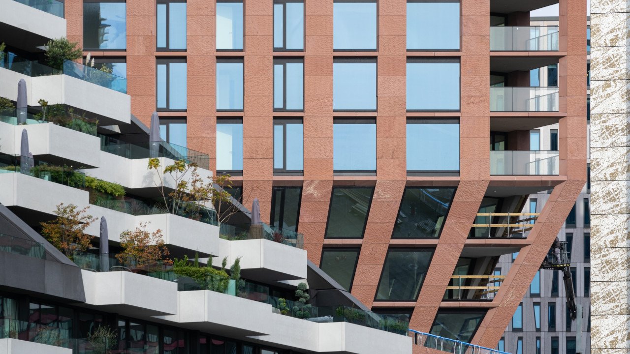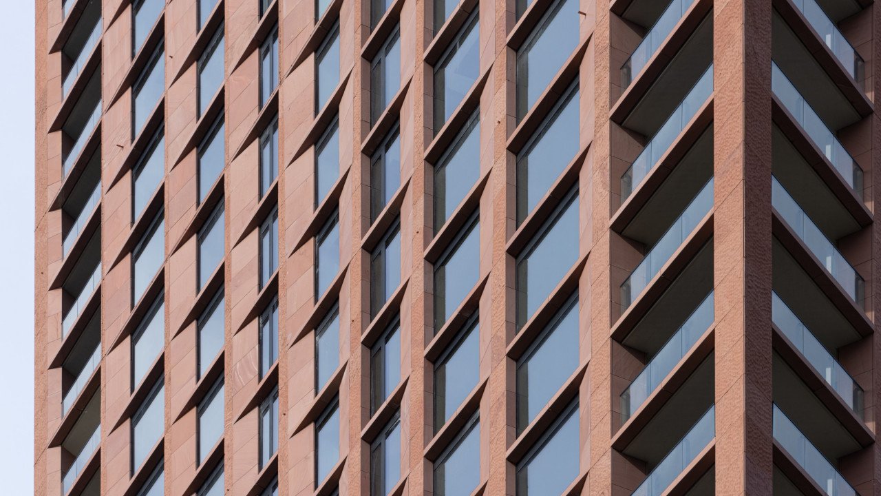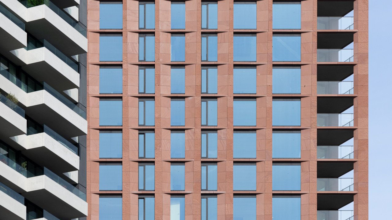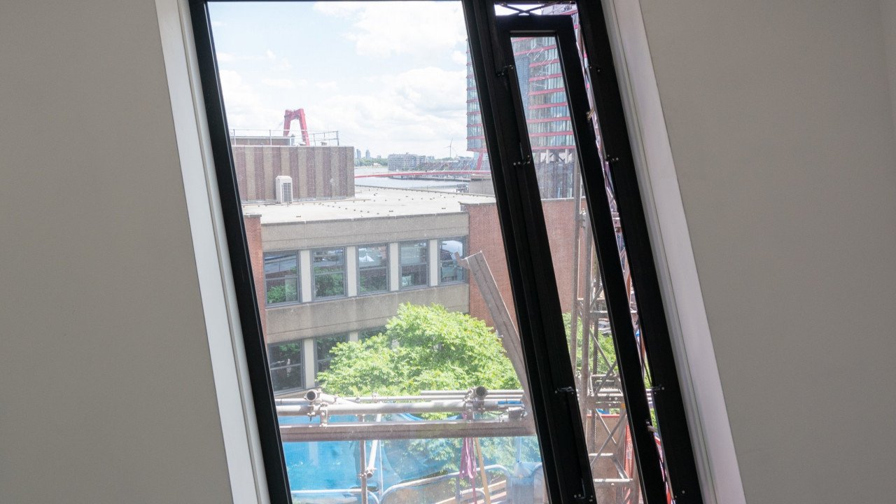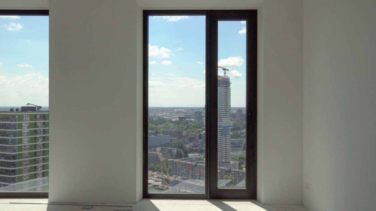 De kozijnen van de 9e t/m 35e verdieping zijn in prefabbetonelementen bij Geelenbeton ingebouwd incl. beglazing. Deze prefab elementen zijn door de aannemer met het ophogen van het gebouw geplaatst. De schuifpuien en de kozijnen op de balkons zijn in het werk gemonteerd. Gezien de afmetingen van de ruiten van de vaste kozijnen op de balkons zijn deze bij het optrekken van het gebouw middels verpakking in houten kisten vooraf op de verdiepingen geplaatst bij het optrekken van het gebouw,