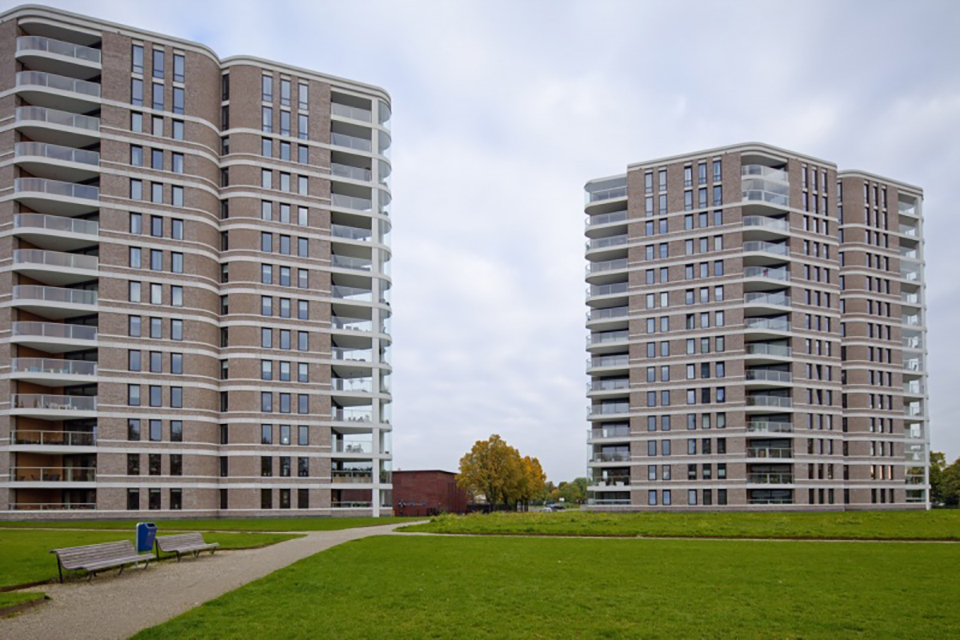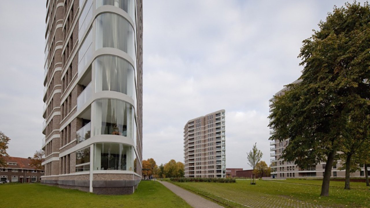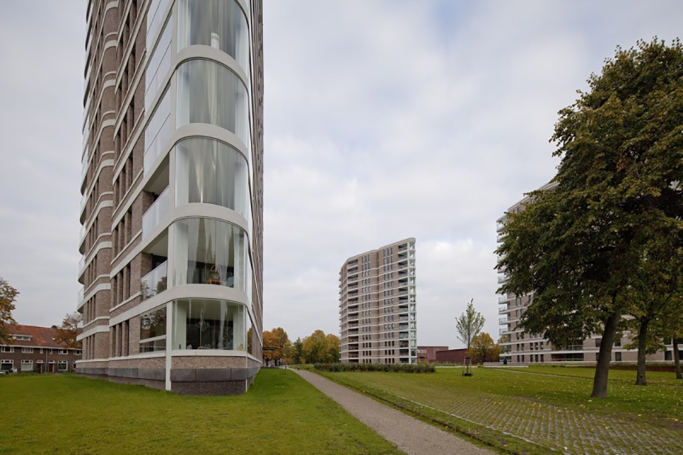 Elke woontoren bestaat uit dertien woonlagen met daarin per laag drie koop- of huurappartementen. Het belangrijkste kenmerk van de drie woontorens is volgens Van der Pol de slankheid en de manier waarop ze op het perceel zijn gepositioneerd. “De omwonenden waren bang voor grote woonblokken maar het resultaat is juist slank en transparant.” Vanuit de omliggende wijken is het zicht op het meer nu vergroot. De transparantie wordt verder versterkt door de ronde, glazen balkons aan de waterkant. De rondingen van deze balkons komen ook op andere plekken in het gebouw terug. De ogenschijnlijk eenvoudige gebouwen kregen een luxe uitstraling door de detaillering en het gebruik van hoogwaardige materialen. Zo koos Van der Pol voor bakstenen die op een bijzondere manier zijn gebakken en verwerkt. De stenen zijn bijna koud op elkaar geplaatst met een dunbedmortel. Dit geeft een massief effect. De banden tussen de bakstenen zijn van betoncomposiet met gemalen marmer erdoor. “Hierdoor wordt het beton witter en vervuilt het materiaal bovendien minder snel.” De gevelverdeling in horizontale en verticale vlakken is een knipoog naar de architectonische stroming van de Bossche School.