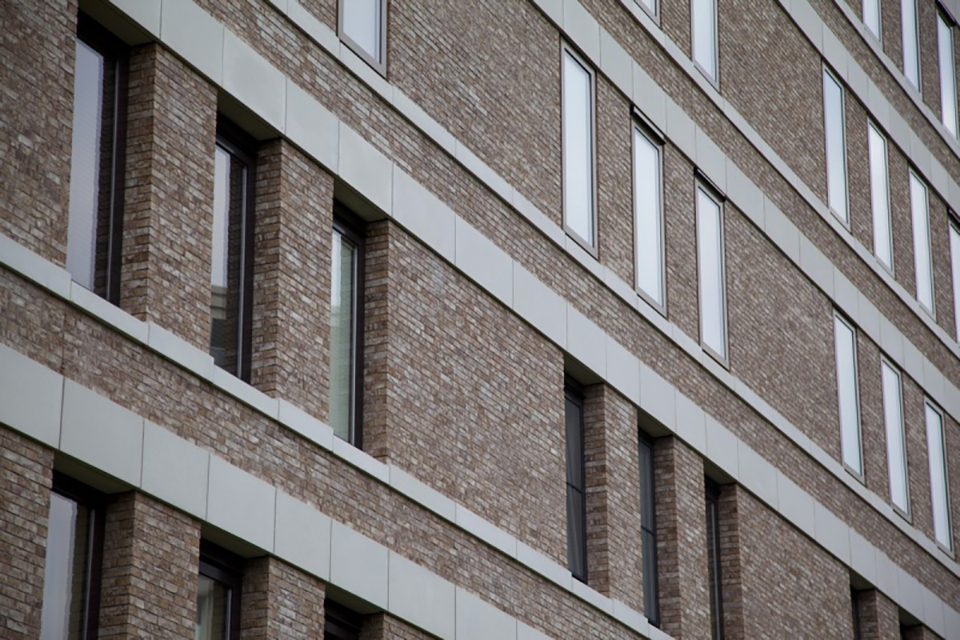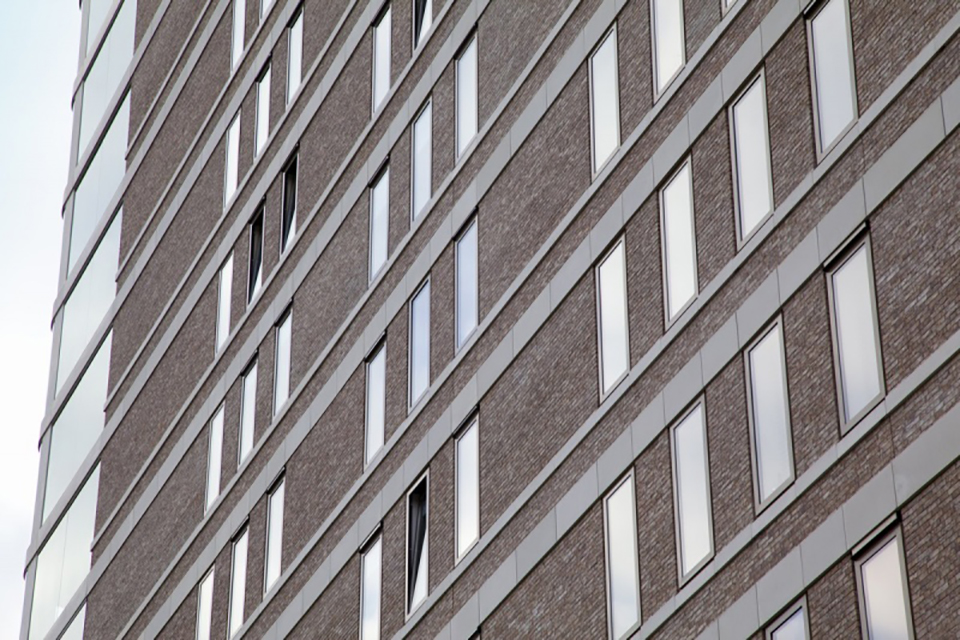De kozijnen in de Amazones moesten aan veel verschillende eisen voldoen: er moest driedubbel glas in voor het comfort van de bewoners, de profielen moesten smal en elegant zijn en er moest een ‘hidden vent’ in zitten. Dat laatste wil zeggen dat aan de buitenkant van het gebouw niet te zien is welke ramen er wel en niet open kunnen. Daarnaast wilde architect Van der Pol de kozijnen afwisselend diep in de negge of juist vlak met het metselwerk laten plaatsen. Aluminium kozijnen van Reynaers boden de mogelijkheid om al deze eisen in te willigen.