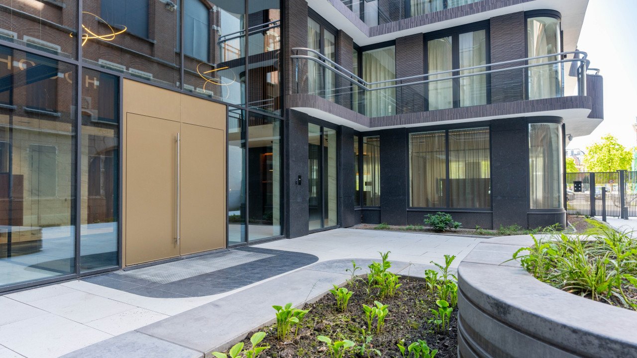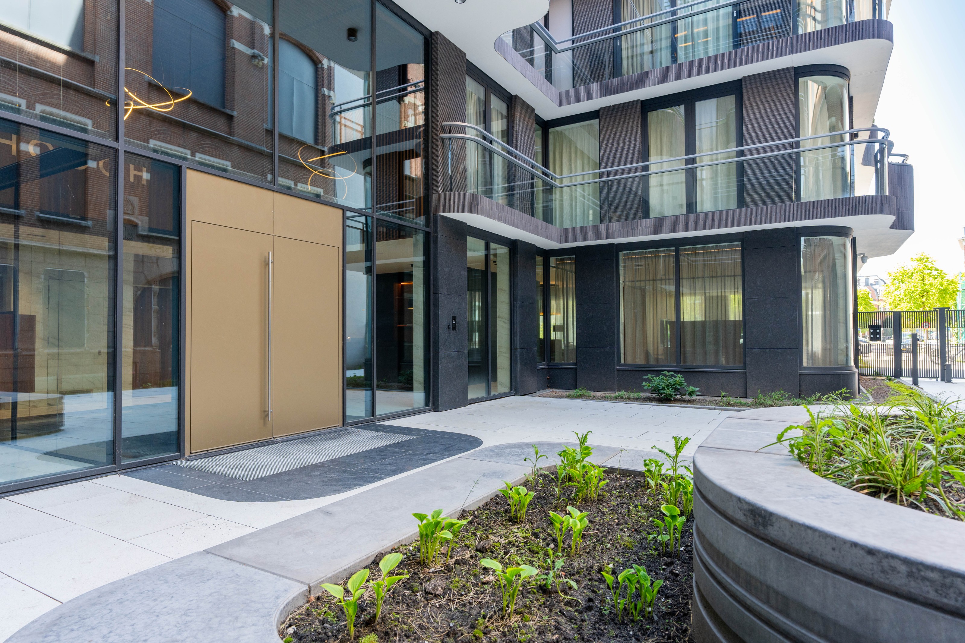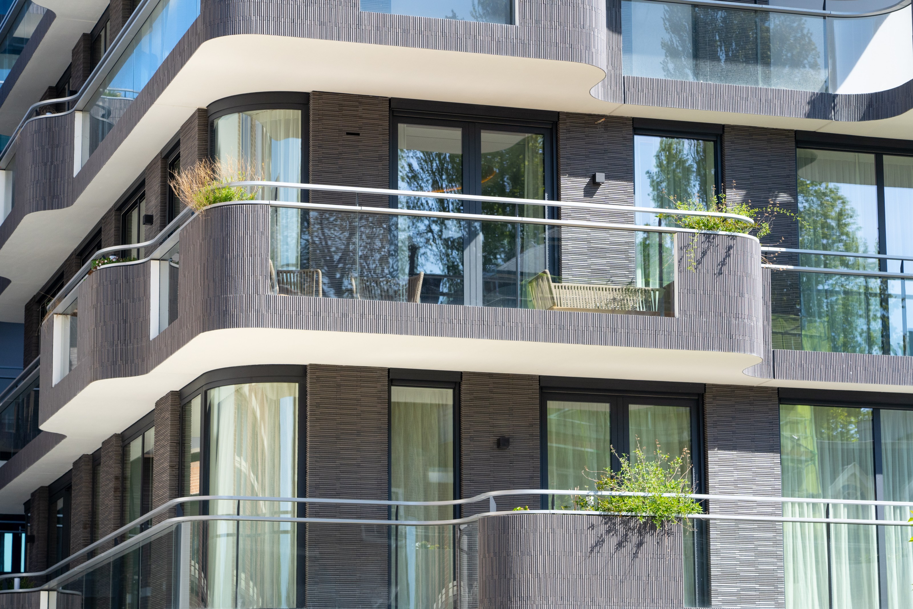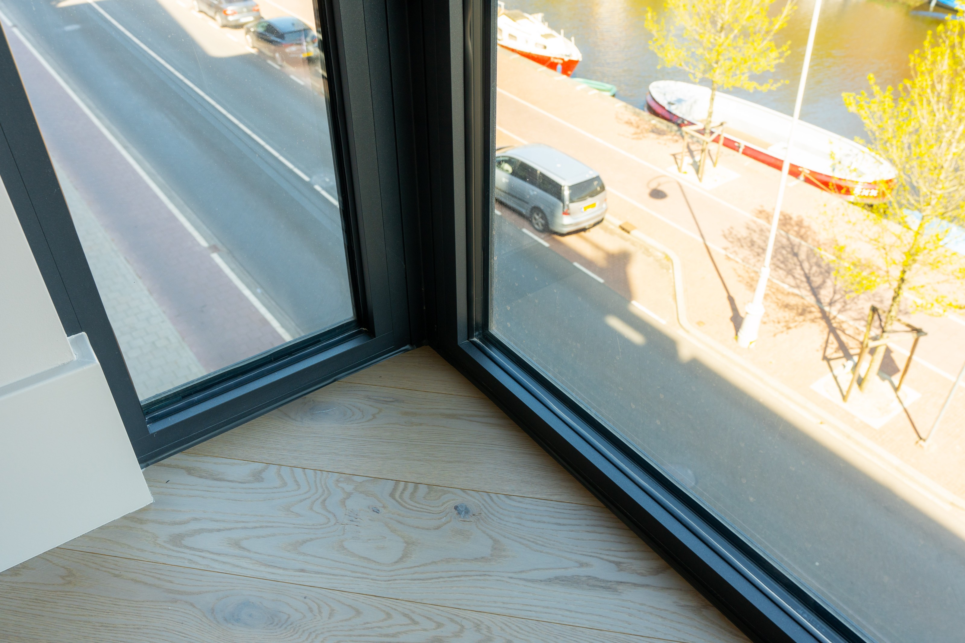 In plaats van een stevig hard bouwblok neerzetten, waren Schilder en Griffioen juist op zoek naar een vorm van elegantie. Dat vonden ze in de afgeronde hoeken van de balkons. “Met die speelsheid die je daarmee inbrengt, laat je de dynamiek van de stad goed zien,” beargumenteert Schilder. “Er is een prachtig uitzicht op het Museumplein maar daarnaast wil je ook de privacy van bewoners én omwonenden waarborgen. Je hebt altijd te maken met een bestaande context. Dat betekent dat je niet alle ramen zo kunt positioneren zoals je ze wilt hebben. Dat is het spel dat we hebben gespeeld met de terug getrapte balkons. Ook door op strategische plekken plantenbakken te plaatsen, zorgen we dat bewoners een mooi uitzicht hebben zonder dat ze inboeten op hun privacy.” Om de transparantie te behouden, bevat De Hooch veel kozijnen en grote raampartijen. Schilder legt uit: “We waren op zoek naar een leverancier die in dit project geloofde. Dat bleek gevelbouwer Facédo in combinatie met Reynaers Aluminium. Het is immers een groot gebouw van wel 25 meter hoog. We hadden dus grote volumes nodig. Maar ook nog eens met een grote diversiteit aan puien. Ronde puien, tweedelige en driedelige puien en deuren.