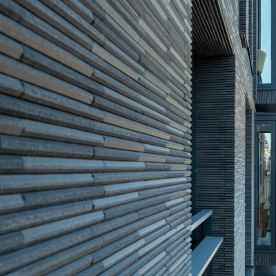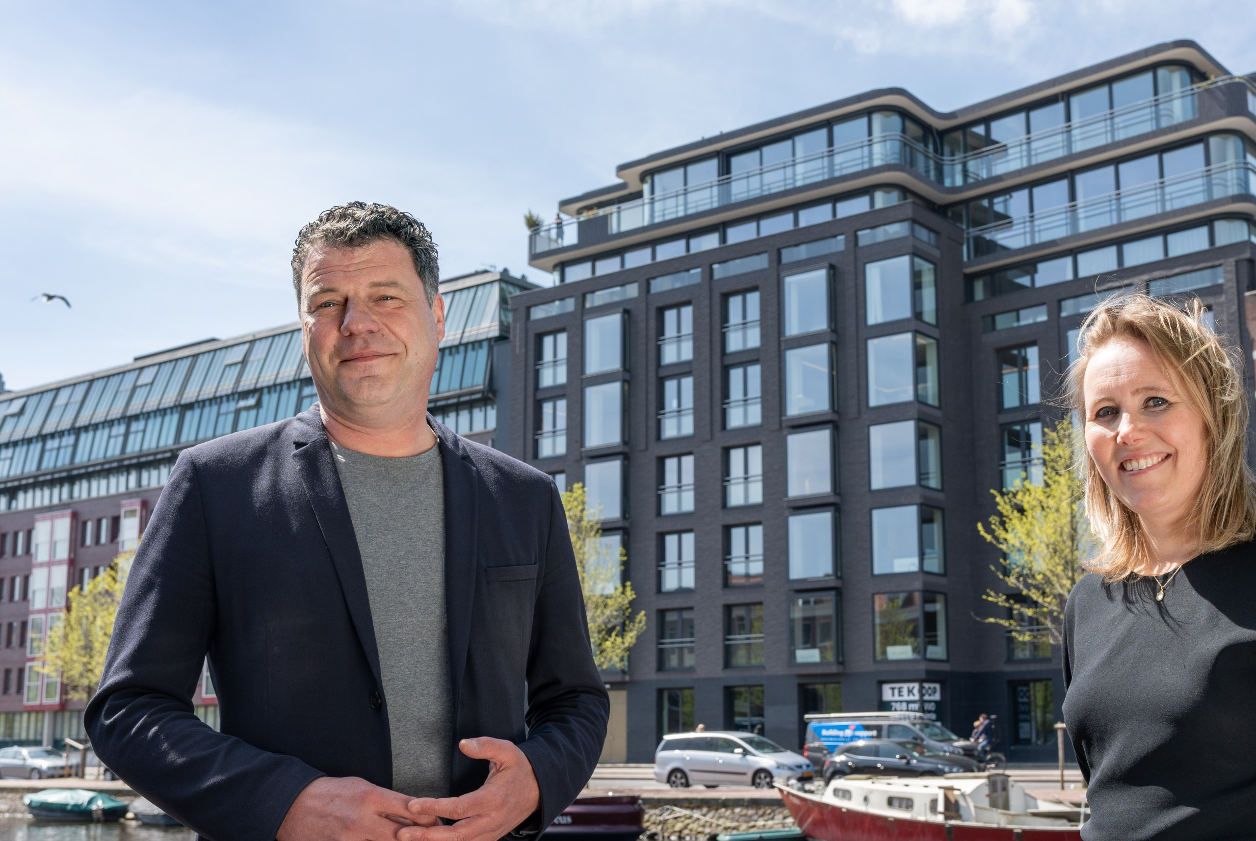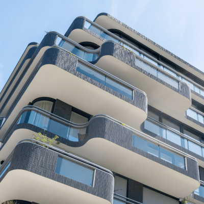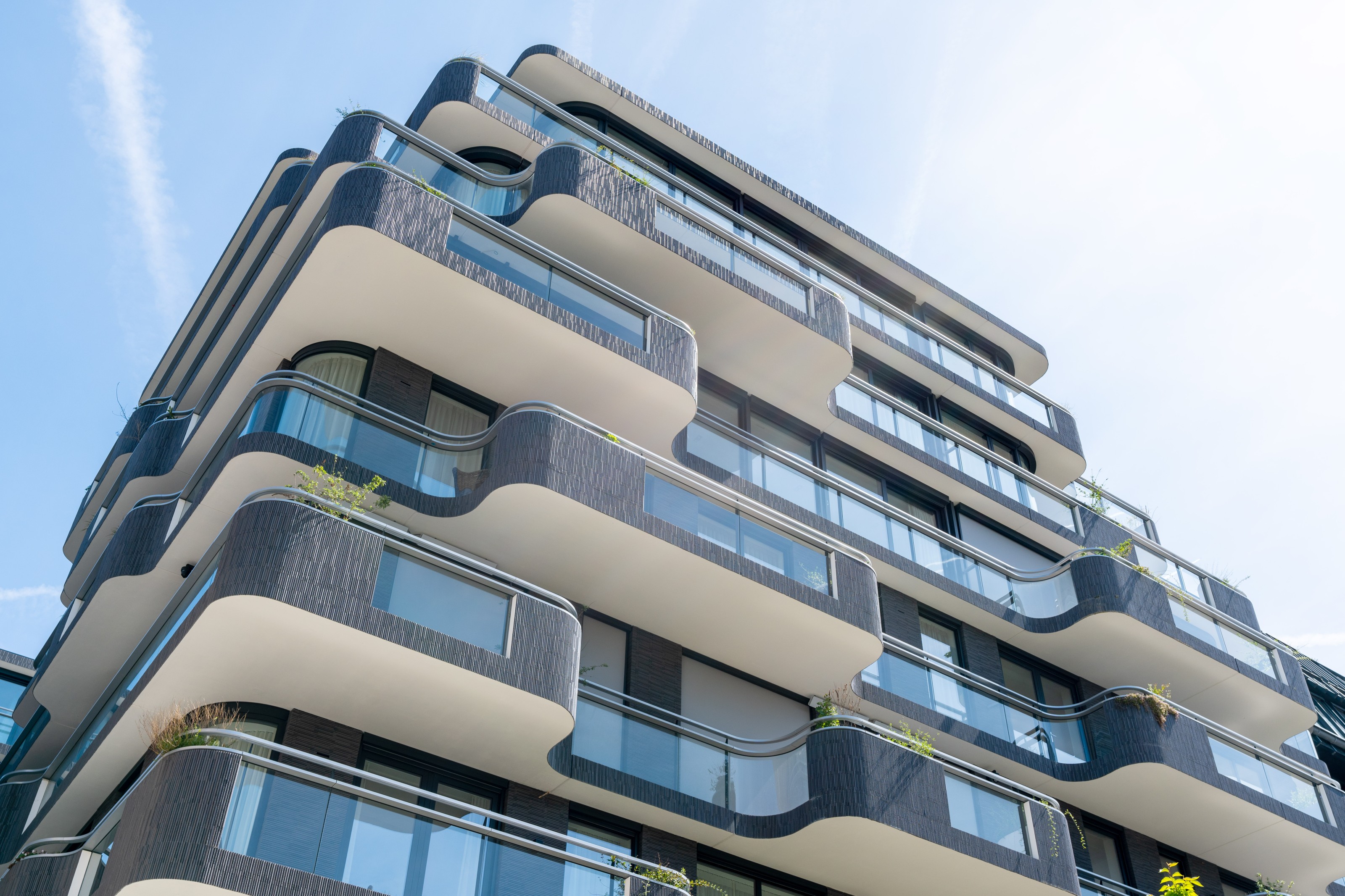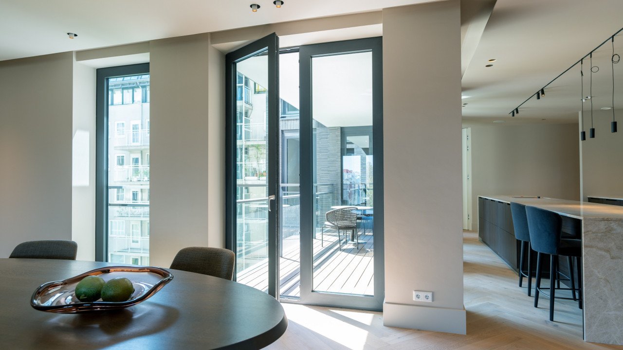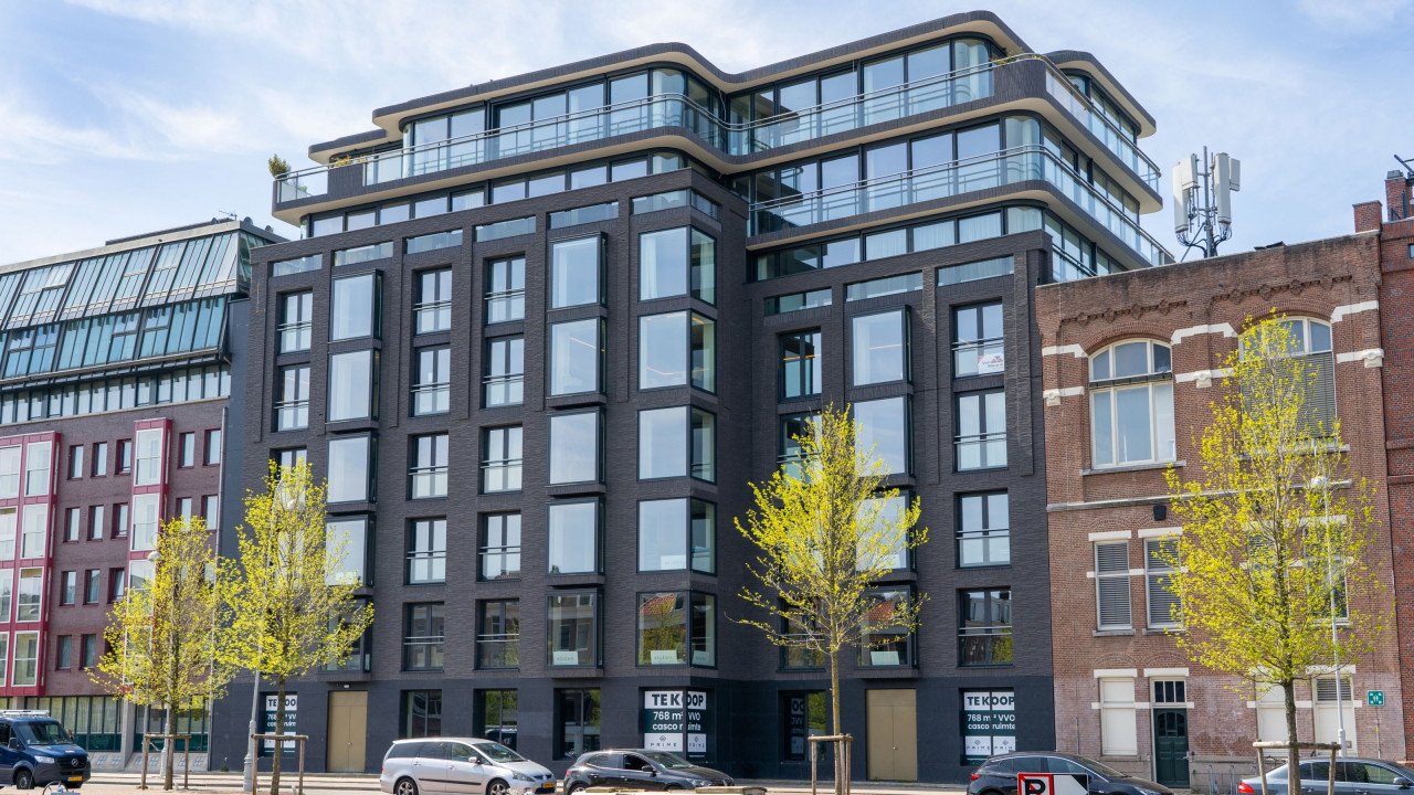 In plaats van een stevig hard bouwblok neerzetten, waren Schilder en Griffioen juist op zoek naar een vorm van elegantie. Dat vonden ze in de afgeronde hoeken van de balkons. “Met die speelsheid die je daarmee inbrengt, laat je de dynamiek van de stad goed zien,” beargumenteert Schilder. “Er is een prachtig uitzicht op het Museumplein maar daarnaast wil je ook de privacy van bewoners én omwonenden waarborgen. Je hebt altijd te maken met een bestaande context. Dat betekent dat je niet alle ramen zo kunt positioneren zoals je ze wilt hebben. Dat is het spel dat we hebben gespeeld met de terug getrapte balkons. Ook door op strategische plekken plantenbakken te plaatsen, zorgen we dat bewoners een mooi uitzicht hebben zonder dat ze inboeten op hun privacy.” Om de transparantie te behouden, bevat De Hooch veel kozijnen en grote raampartijen. Schilder legt uit: “We waren op zoek naar een leverancier die in dit project geloofde. Dat bleek gevelbouwer Facédo in combinatie met Reynaers Aluminium. Het is immers een groot gebouw van wel 25 meter hoog. We hadden dus grote volumes nodig. Maar ook nog eens met een grote diversiteit aan puien. Ronde puien, tweedelige en driedelige puien en deuren.
