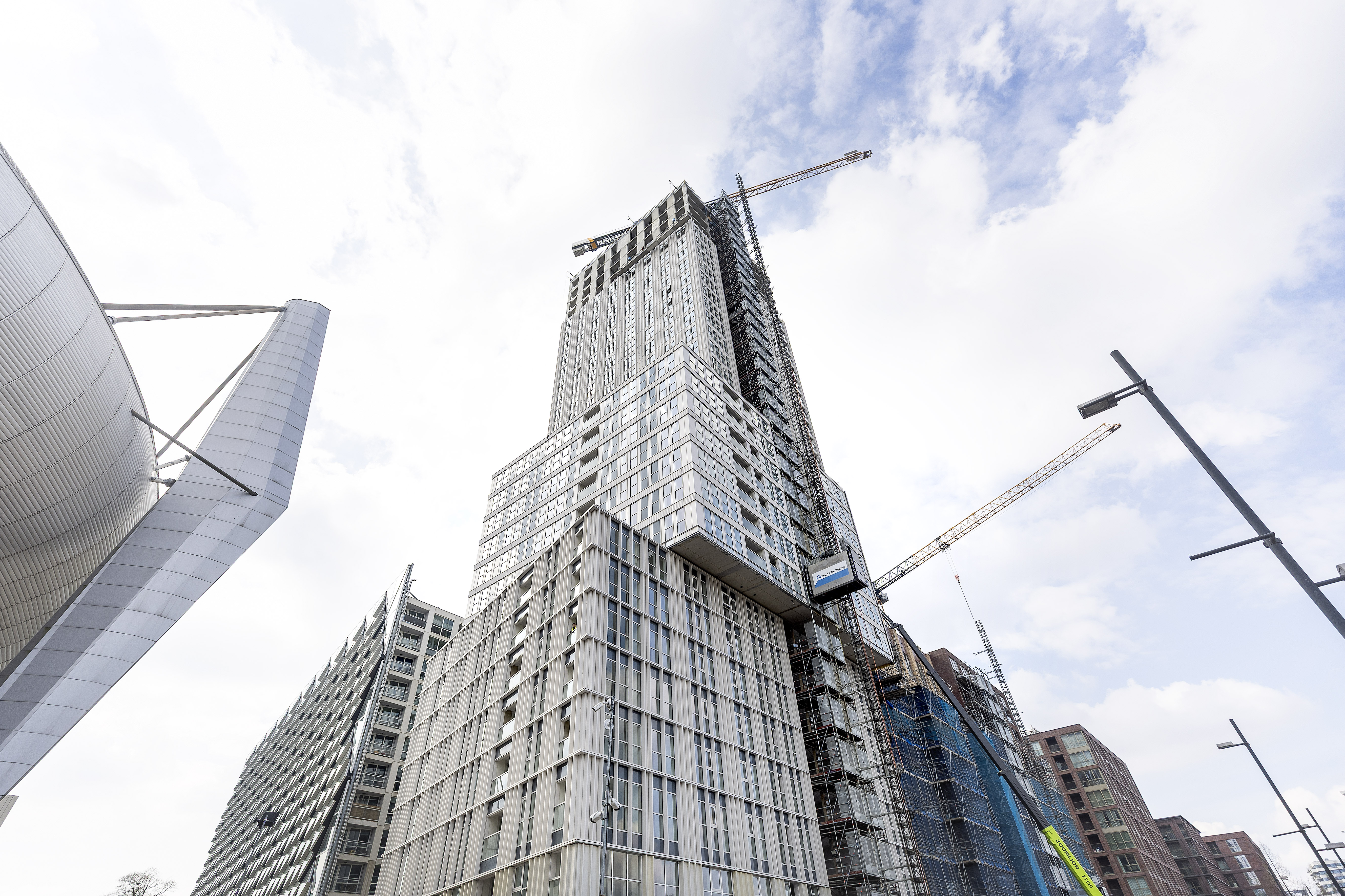 Woontoren Eurostaete in Eindhoven steekt nu al letterlijk boven haar omgeving uit. De toren, een ontwerp van architectenbureau diederendirrix, is nog in aanbouw. Het Stadionkwartier waar Eurostaete deel van uitmaakt, vormt de verbinding tussen het levendige stadscentrum met het Philips Stadion en de hippe wijk Strijp-S. Prefab bouw, geluidsarme ventilatie en elementengevels geven vorm aan de toren en de twee laagbouwvolumes met daarin 479 appartementen en een commerciële plint. Gevelbouwer TGM realiseert de gevel met het ElementFaçade 7 vliesgevelsysteem.
