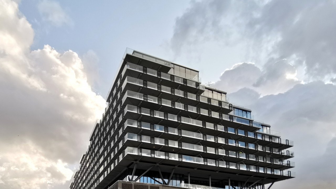 Fenix I is de nieuwe trots van de Rotterdamse wijk Katendrecht. Op een honderd jaar oude havenloods zijn ruim tweehonderd appartementen gelegd. Daarvoor is een ingenieuze staalconstructie ontwikkeld van anderhalf miljoen kilo.