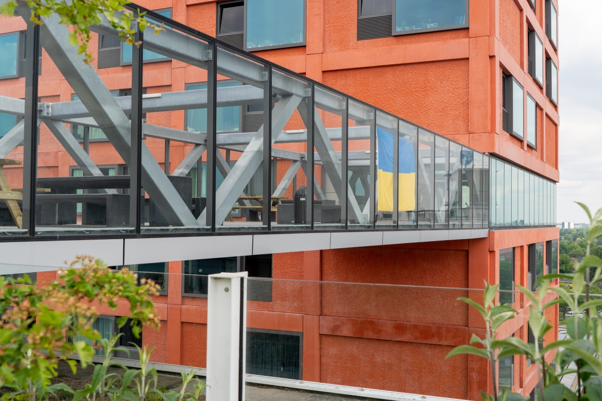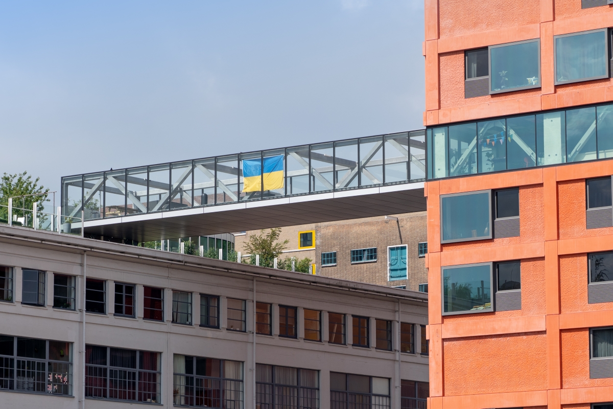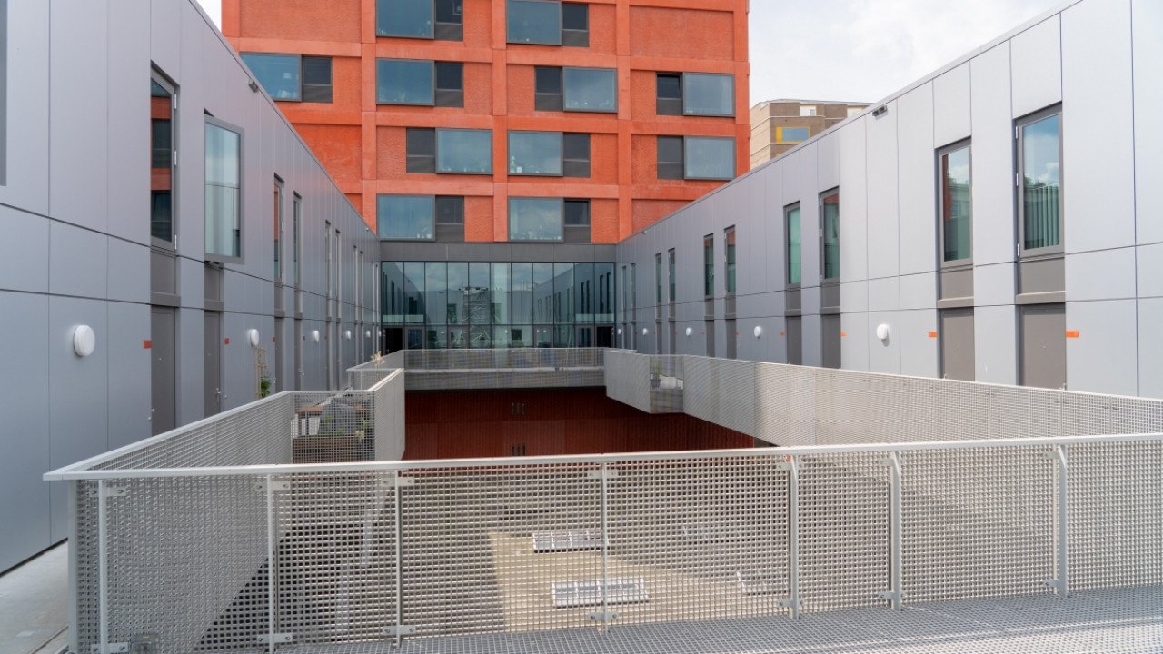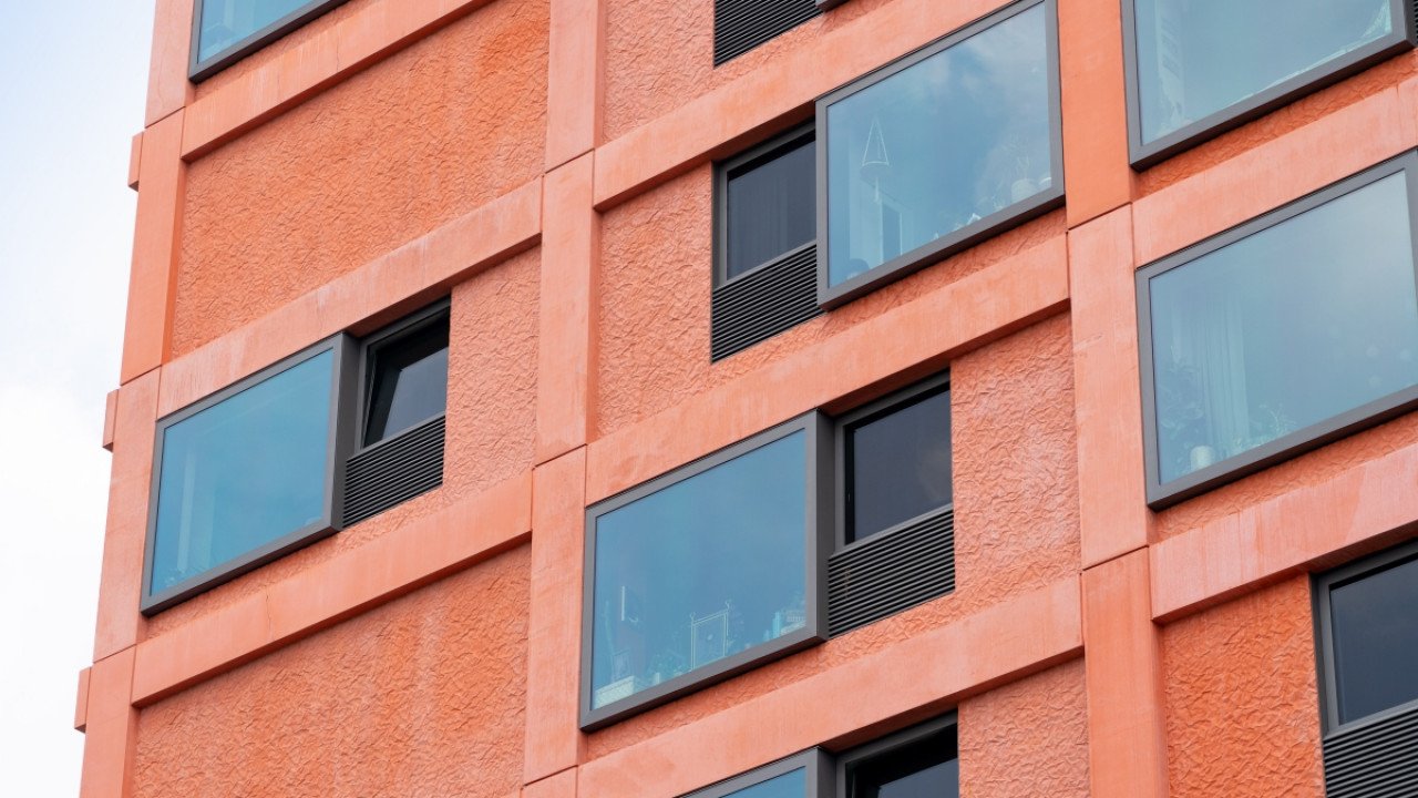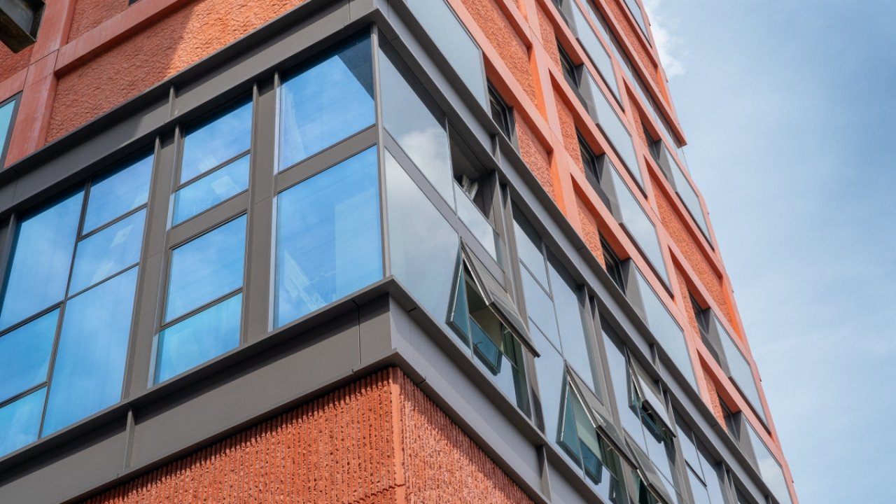 Vanuit de gemeente moest het gebouw voldoen aan de geldende geluidseisen. Hierdoor moest de raamindeling worden aangepast. VMX Architects hierover: “Het raam is nu opgebouwd uit drie delen. Een groot raam met daarnaast een filter dat het geluid absorbeert. Boven dit filter zit nog een kleiner raam dat open kan. Dit raam hebben we donker gemaakt zodat alle aandacht naar het grote raam gaat. Die beleving van zo’n groot kozijn vonden wij erg belangrijk. Je ervaart de natuur en de omgeving op die manier optimaal. De invloed van daglicht heeft een positief effect op je gemoedstoestand en leefruimte. Dat zijn zaken die voor mij als architect zwaar wegen. We zijn echt trots op het eindresultaat. Het gebouw is genomineerd voor meerdere prijzen. Dat is een mooie erkenning.”