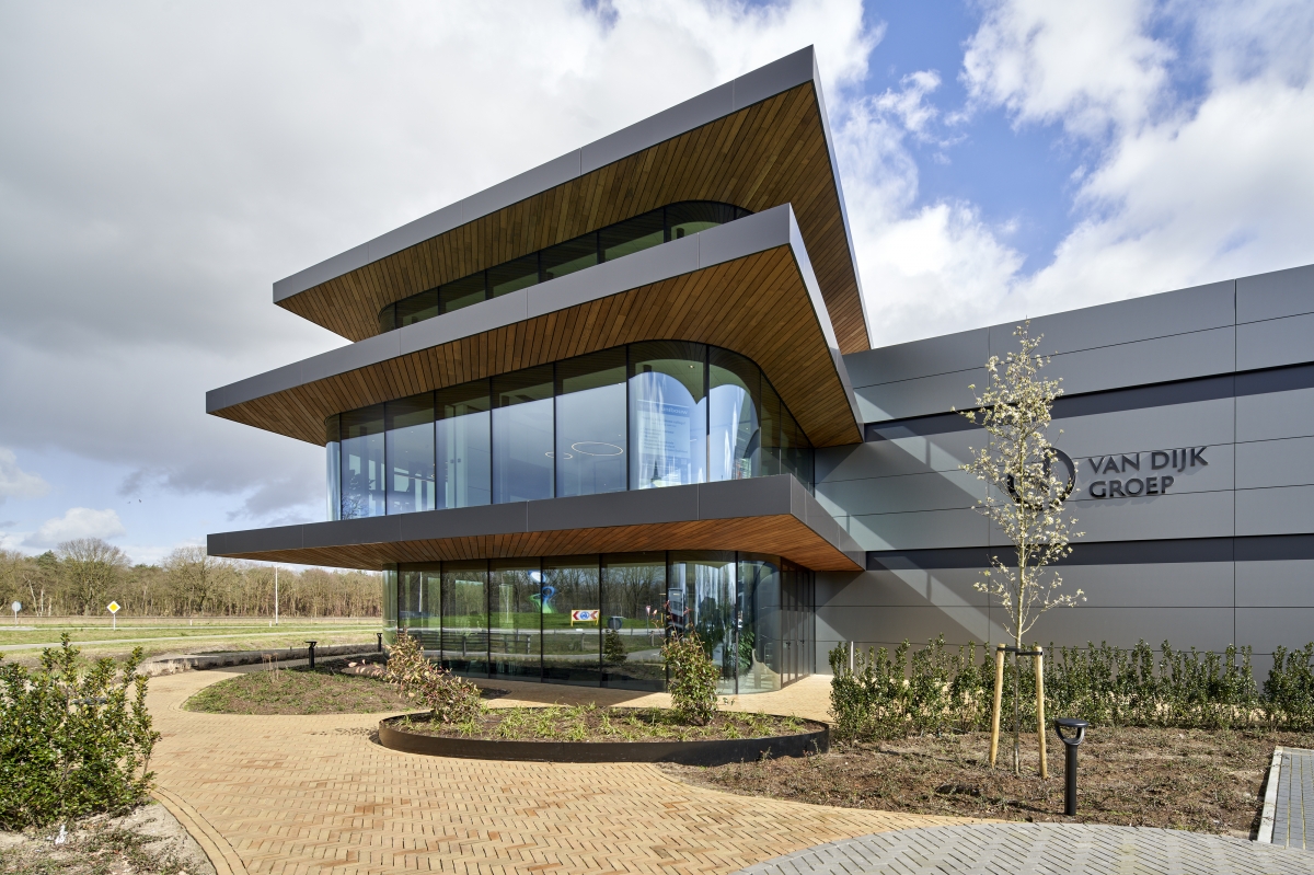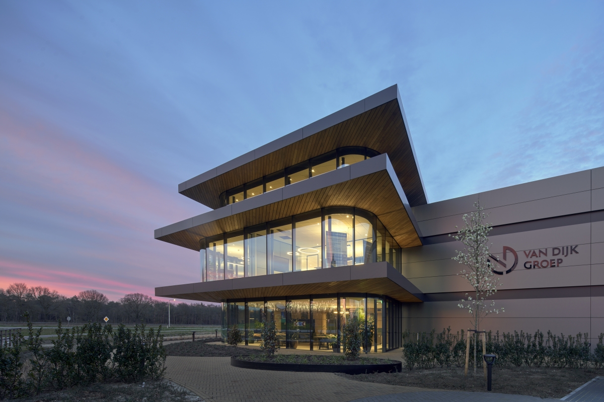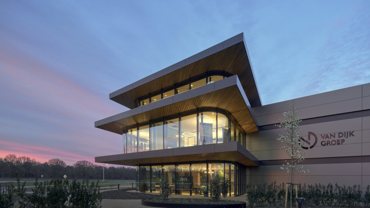 Goede dingen kosten tijd, Rome werd ook niet in een dag gebouwd. Aan het hightech hoofdkantoor van de Van Dijk Groep in Gemert ging een lang en intensief traject vooraf. De verschillende directies hadden ieder hun zienswijze op het gebouw. Architectuurbureau Denkkamer stroomlijnde dit proces en ontwierp een karakteristiek pand met gebolde glazen gevel en uitkragende luifels.