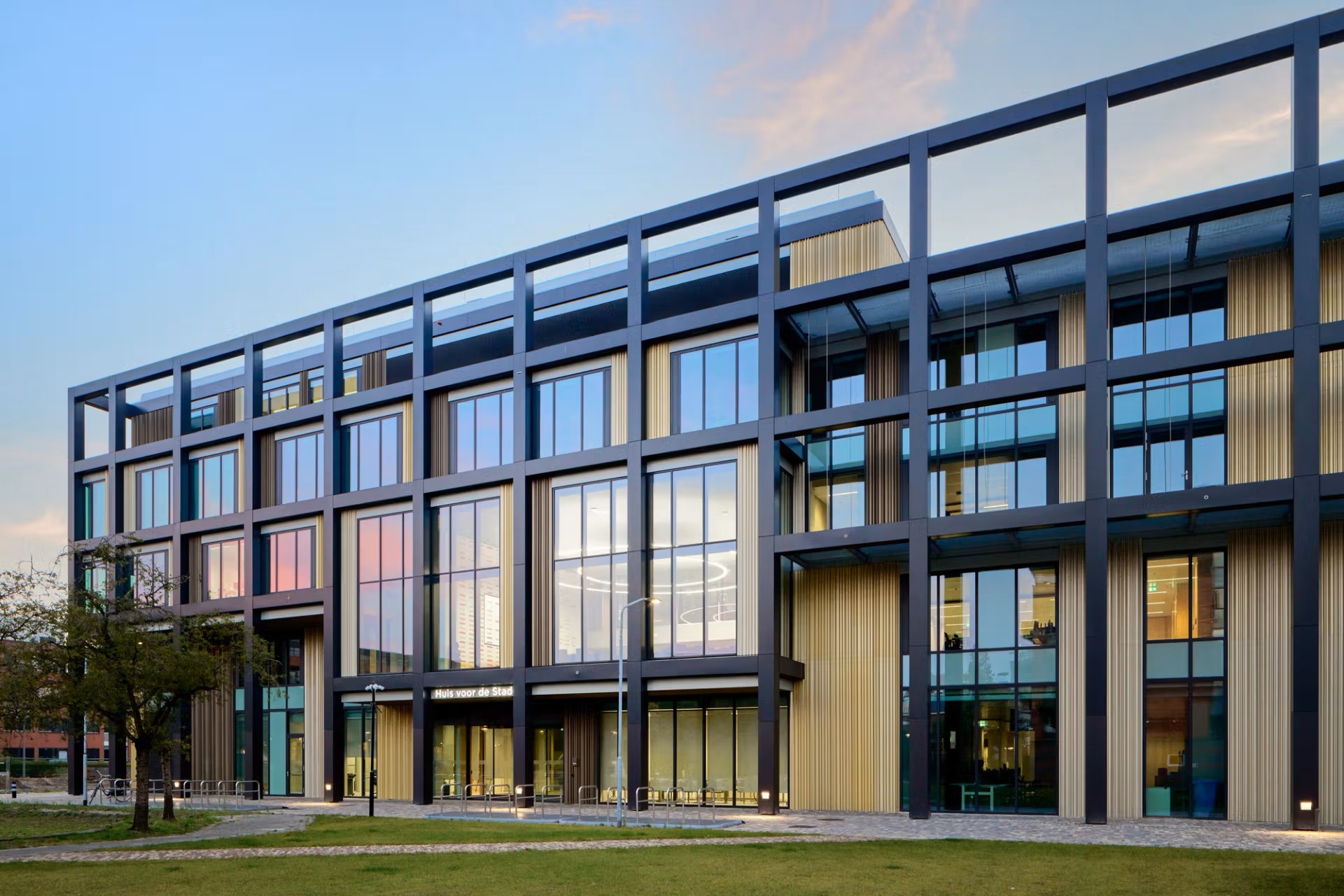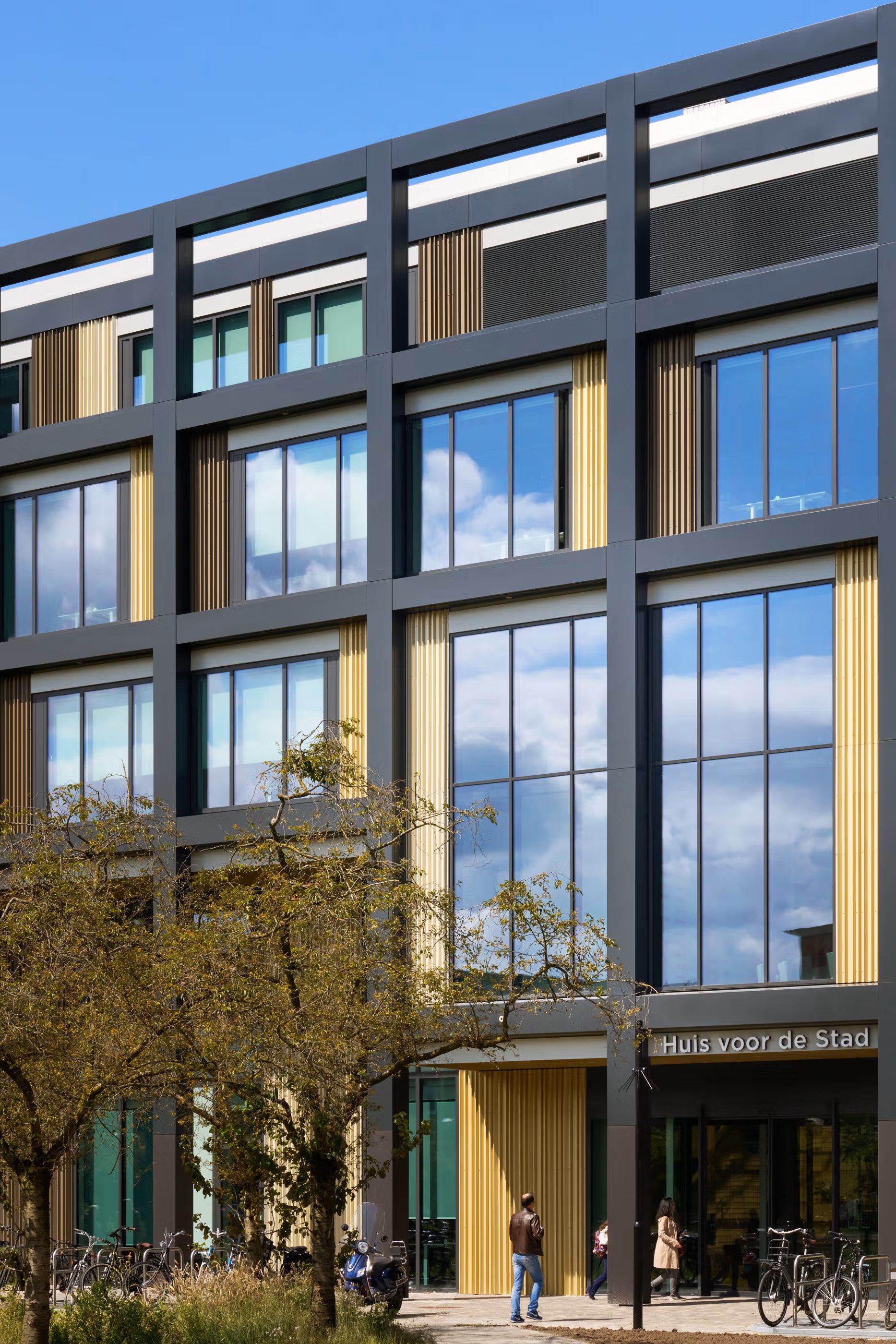 Het Huis voor de Stad in Helmond is ontworpen als een open en toegankelijk stadhuis dat ontmoeting en verbinding centraal stelt. Het ontwerp, geïnspireerd door de textielpatronen uit het verleden van Helmond, kenmerkt zich door een gevel met een rijk lijnenspel dat zowel de buitenkant als het interieur verbindt.