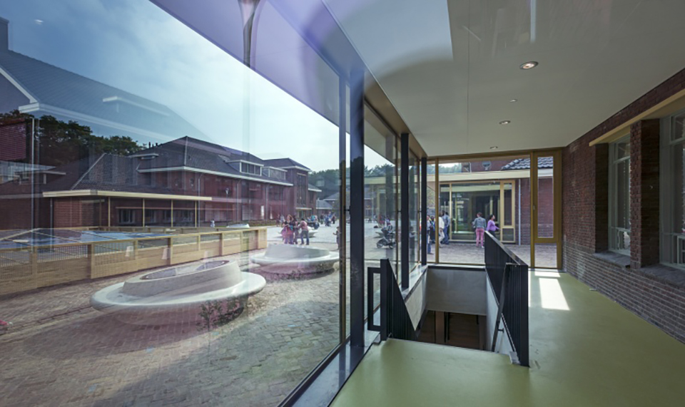 De bestaande panden werden gerenoveerd en kregen nieuwe, aluminium kozijnen in een zachtgouden tint. De uitbreidingen aan de bestaande gebouwen kregen een open karakter, maar werden in vorm en detaillering afgestemd op het bestaande.
