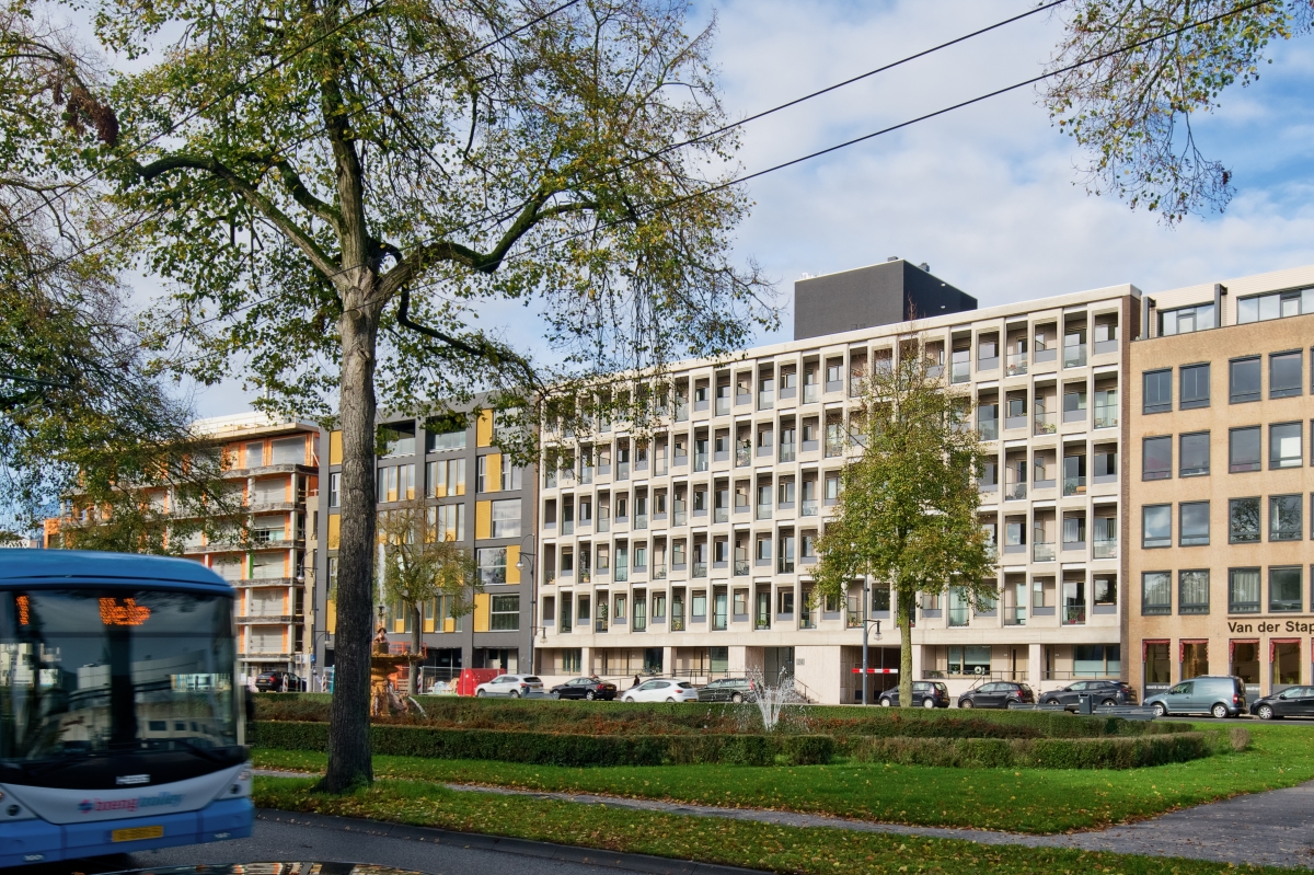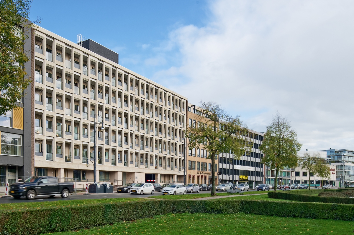 Een verouderd kantoorgebouw is opgewaardeerd tot een eigentijds wooncomplex dat naadloos past in het binnenstedelijk weefsel. Bovendien voldoet het door slimme plaatsing van zonnepanelen op het dak aan moderne energie-eisen. Daarbij is niet verbloemd dat dit een bestaand gebouw is dat een tweede jeugd krijgt. Door slim gebruik te maken van het bestaande potentieel is sleetse architectuur verheven tot een efficiënt en toch een aansprekend woongebouw. Licht- en geluidsnormen zijn gehaald door de open gevelstructuur optimaal te gebruiken. Inderdaad, een geslaagde casestudy voor binnenstedelijke transformatie.