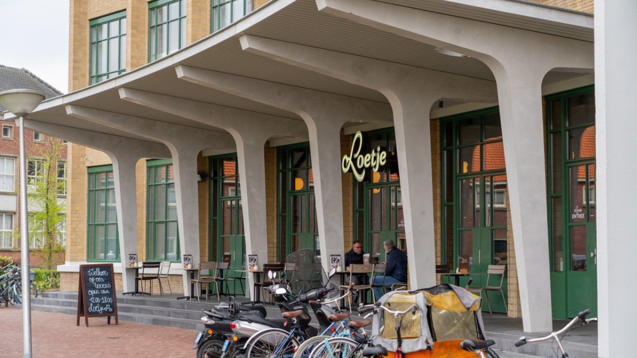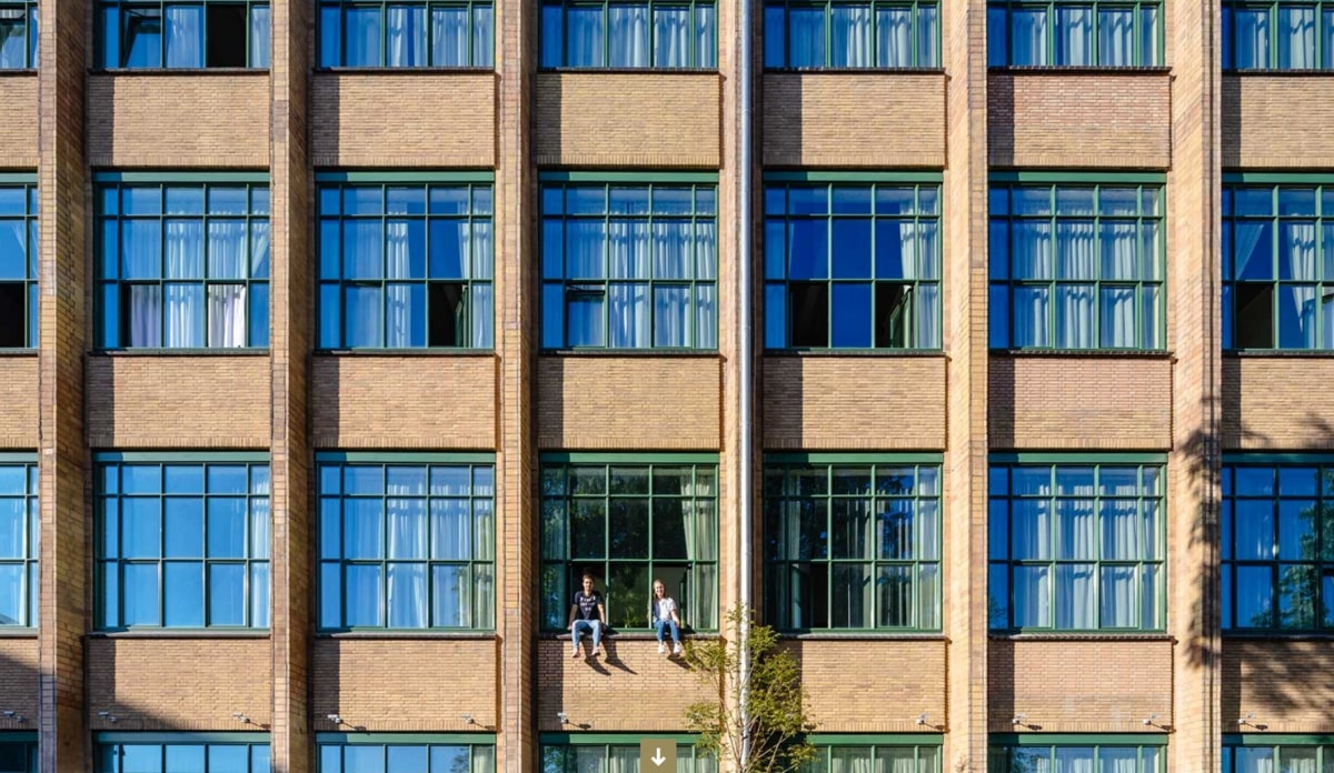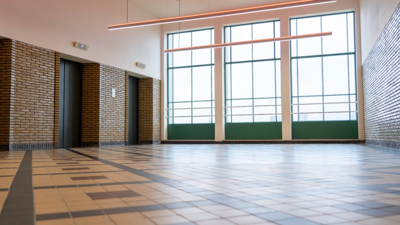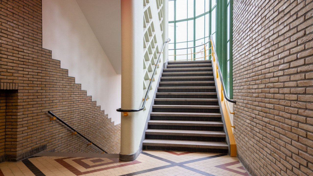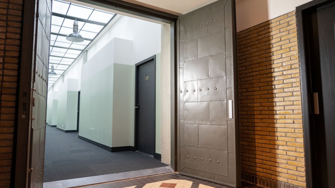 Verder is de hoofdingang aan de Essenstraat gereconstrueerd, inclusief de betonnen luifel. Daarnaast is ook het originele kleurenpalet in het gebouw teruggebracht. En ten slotte zijn alle authentieke elementen, waaronder branddeuren, tussenpuien en geglazuurd metselwerk hersteld of gereconstrueerd.