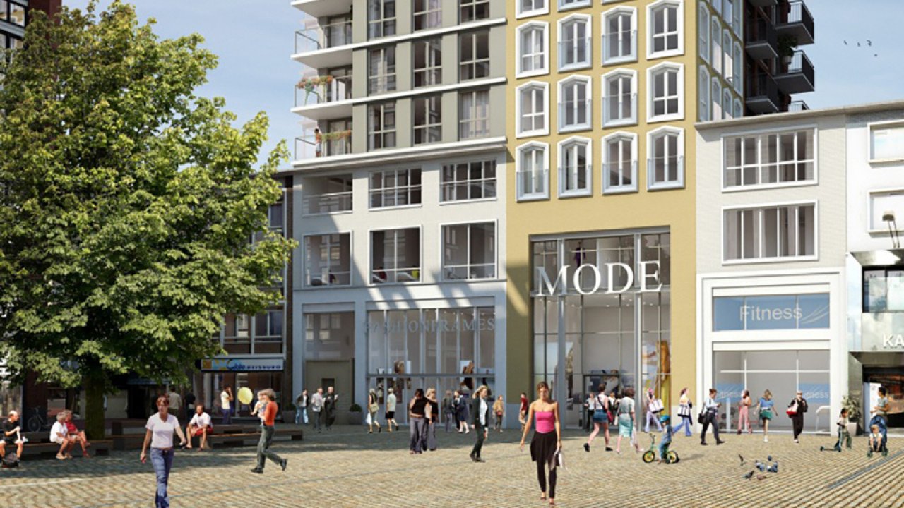 Plein 1944 in Nijmegen, gebouwd in de wederopbouwperiode na het bombardement op de binnenstad, functioneerde slecht. Wat ooit bedoeld was als een ontmoetings- en herdenkingsplein, stond bekend als ‘het lelijkste plein van Nederland’. Het miste elke intimiteit door de weidsheid en het gebrek aan begrenzing door gebouwen. Er was weinig levendigheid: de ingangen van de woningen bevonden zich aan de binnenterreinen achter het plein en het winkelaanbod was beperkt. In het midden van het plein lag een busstation, waardoor de stank en het lawaai van bussen overheersden. Het plein lag bovendien verdiept, waardoor de mensen er nauwelijks overheen liepen. De opgave was er weer een sfeervolle en levendige verblijfsruimte van te maken. Het herstructureringsplan, gemaakt samen met Buro Lubbers, bouwt voort op de stedenbouwkundige en architectonische principes van de wederopbouwperiode. Een belangrijke ingreep is het nieuwe kopgebouw, dat het bestaande plein in tweeën splitst. Hierdoor ontstaat er ruimte voor een apart entreeplein met een busstation en een groter (verblijfs)plein voor voetgangers. Beide worden weer helemaal vlak gemaakt. Nieuwe gebouwen vullen de bestaande bebouwing uit de wederopbouwperiode aan en zorgen voor gesloten pleinwanden. Om de intimiteit van het plein verder te versterken zijn in de massa rond het plein hogere torens geplaatst. De toegevoegde nieuwbouw is telkens geleed in drie volumes: het onderste winkelgedeelte volgt nauwgezet de hoogte, de kleur en het materiaal van de bestaande wederopbouwplint. Daarbovenop ligt een terugliggend glazen volume waarin woningen zijn gevestigd. Daartegenaan staan de verticale woontorens, die zo slank mogelijk zijn gemaakt. Ook de details zijn bewerkingen van typische Nijmeegse wederopbouwthema’s, zoals de reliëfversieringen in het metselwerk en het gebruik van betonnen elementen om stukken metselwerk te omkaderen of van horizontale lijnen en blokjes te voorzien. Zeker zo belangrijk voor het uiteindelijke functioneren van het plein is de toevoeging van verschillende functies. Grote winkel- en recreatiegebouwen zullen fungeren als publiekstrekkers. De woningen in de torens krijgen een voordeur aan het plein.