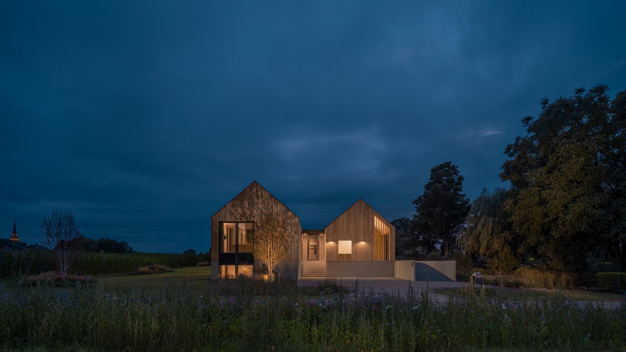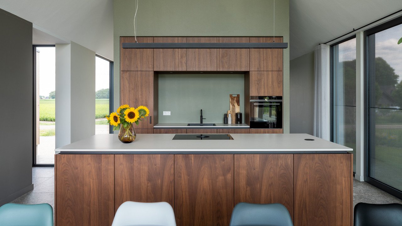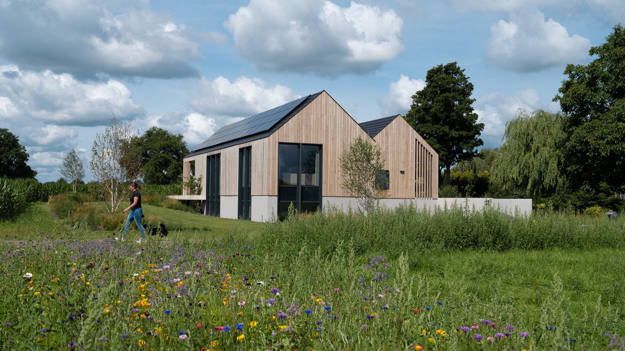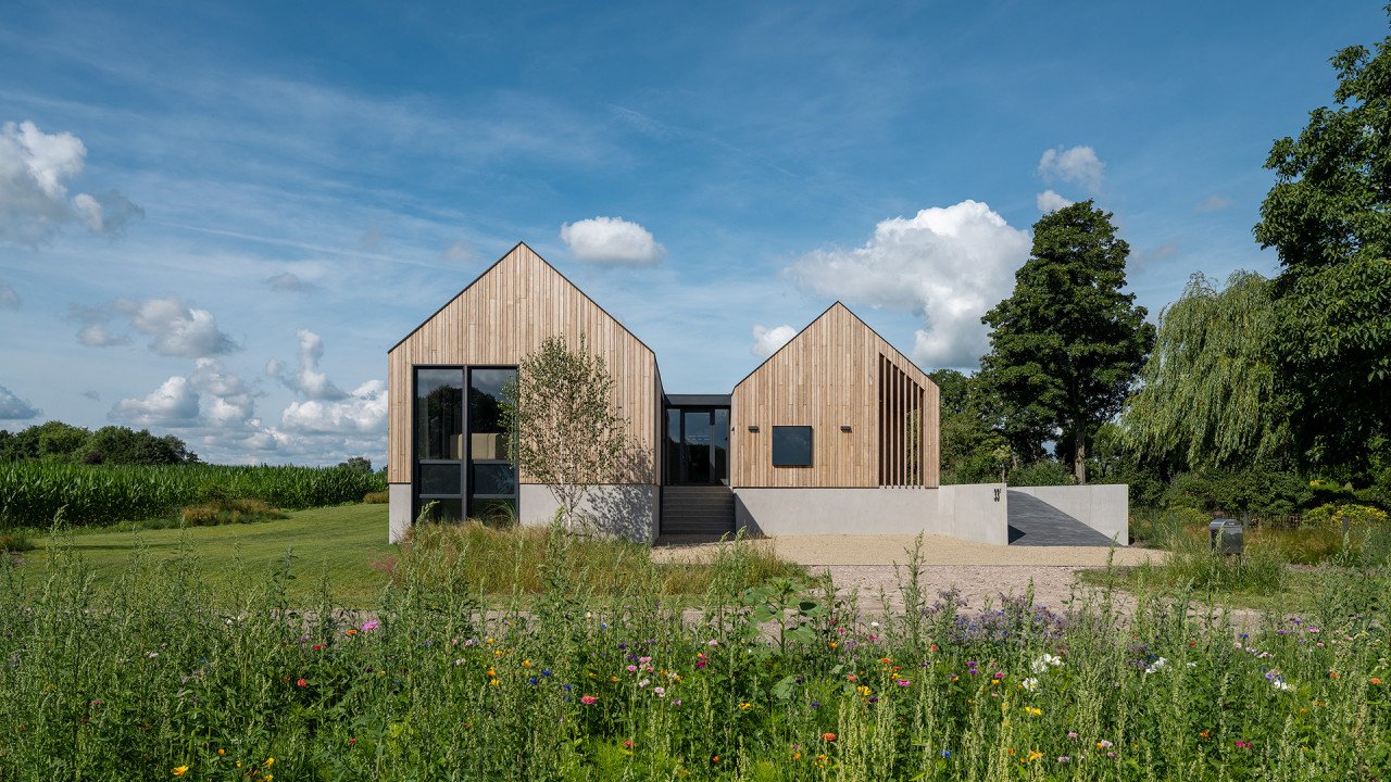 Een woning die allesbehalve standaard is. En waar je optimaal kunt genieten van het rijke uitzicht over de landerijen. Het souterrain komt deels boven de grond uit en daar bovenop zijn de leefruimtes geplaatst. Ook door het zwevende terrasplateau aan de achterzijde lijkt de woning echt te zweven.