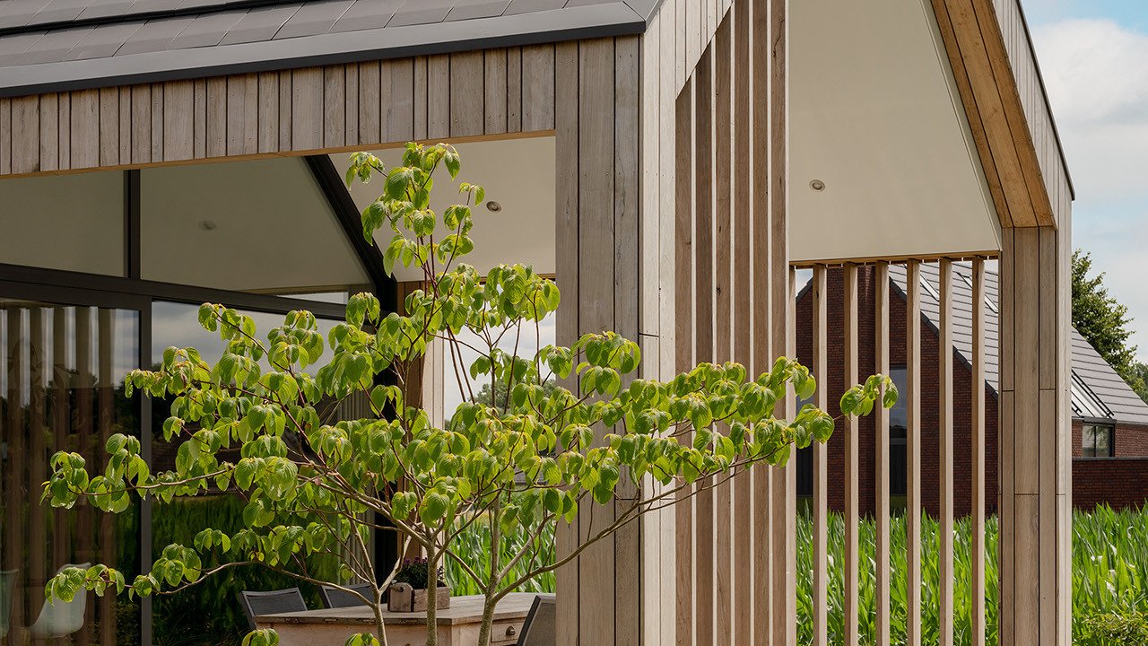 De constructie van de woning en royale overkapping, is volledig uit hout opgebouwd, en ook de buitenzijde is met hout afgewerkt. Dat geeft een prachtige natuurlijke uitstraling. Bovendien heeft houtskeletbouw veel voordelen. De bouw is eerder voltooid én duurzamer in vergelijking met moderne bouwmethoden. De woning is ook beter geïsoleerd èn brandveiliger.