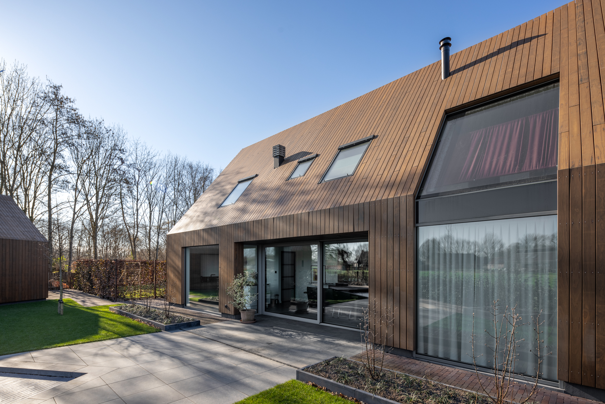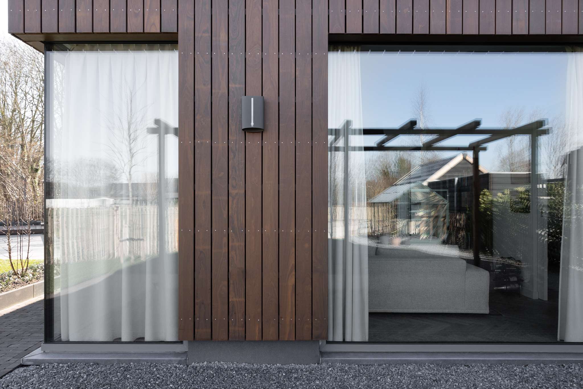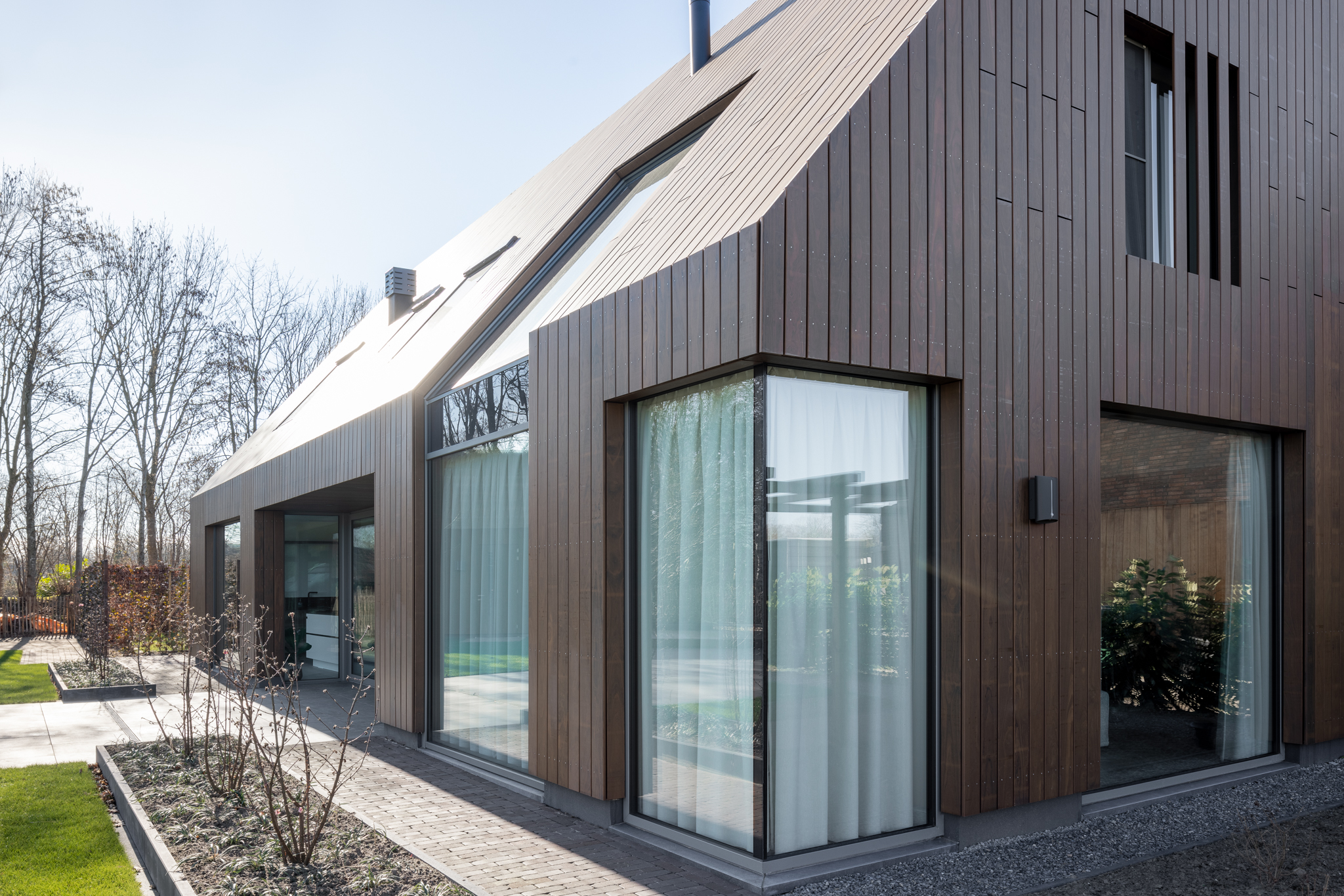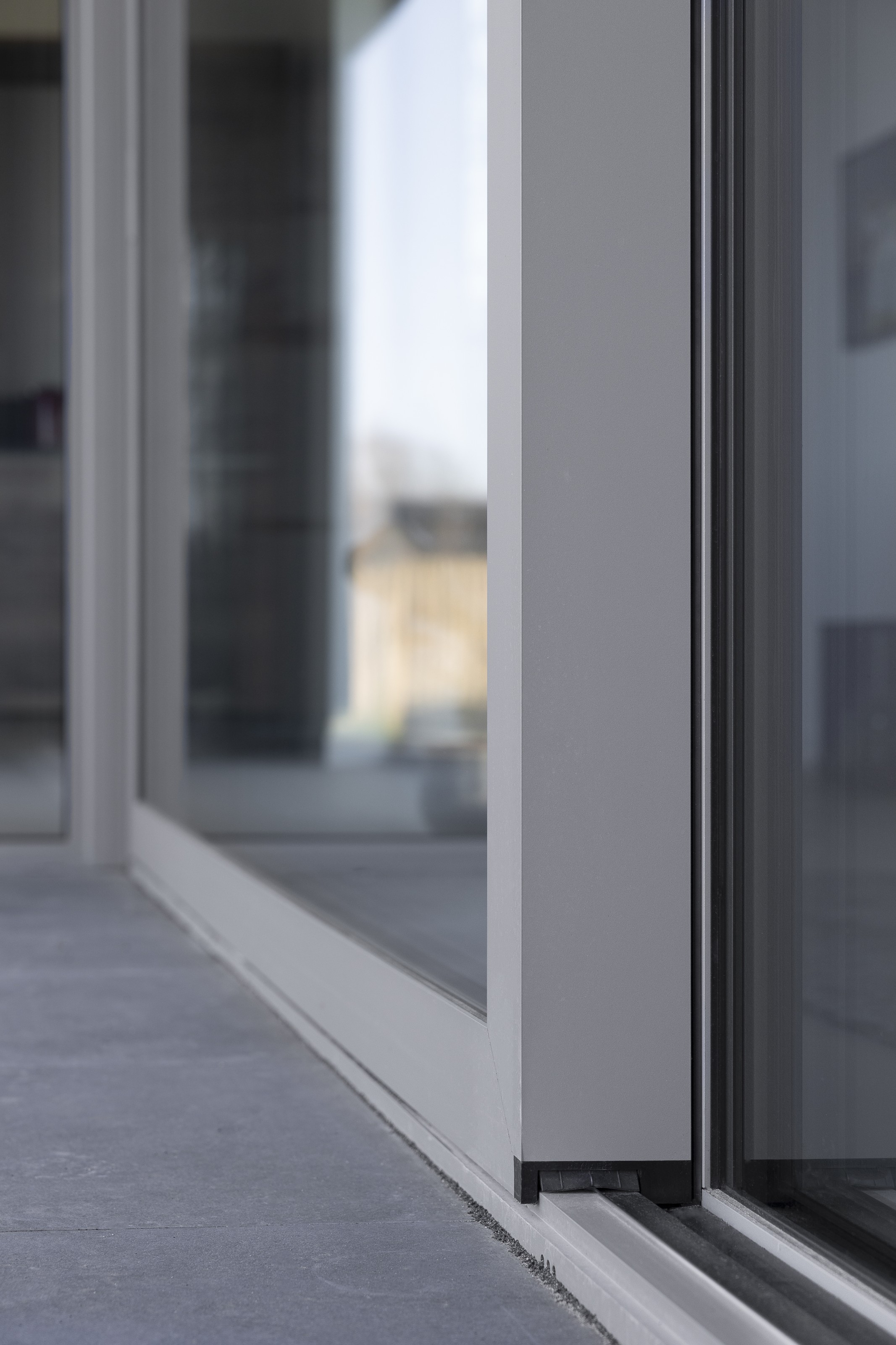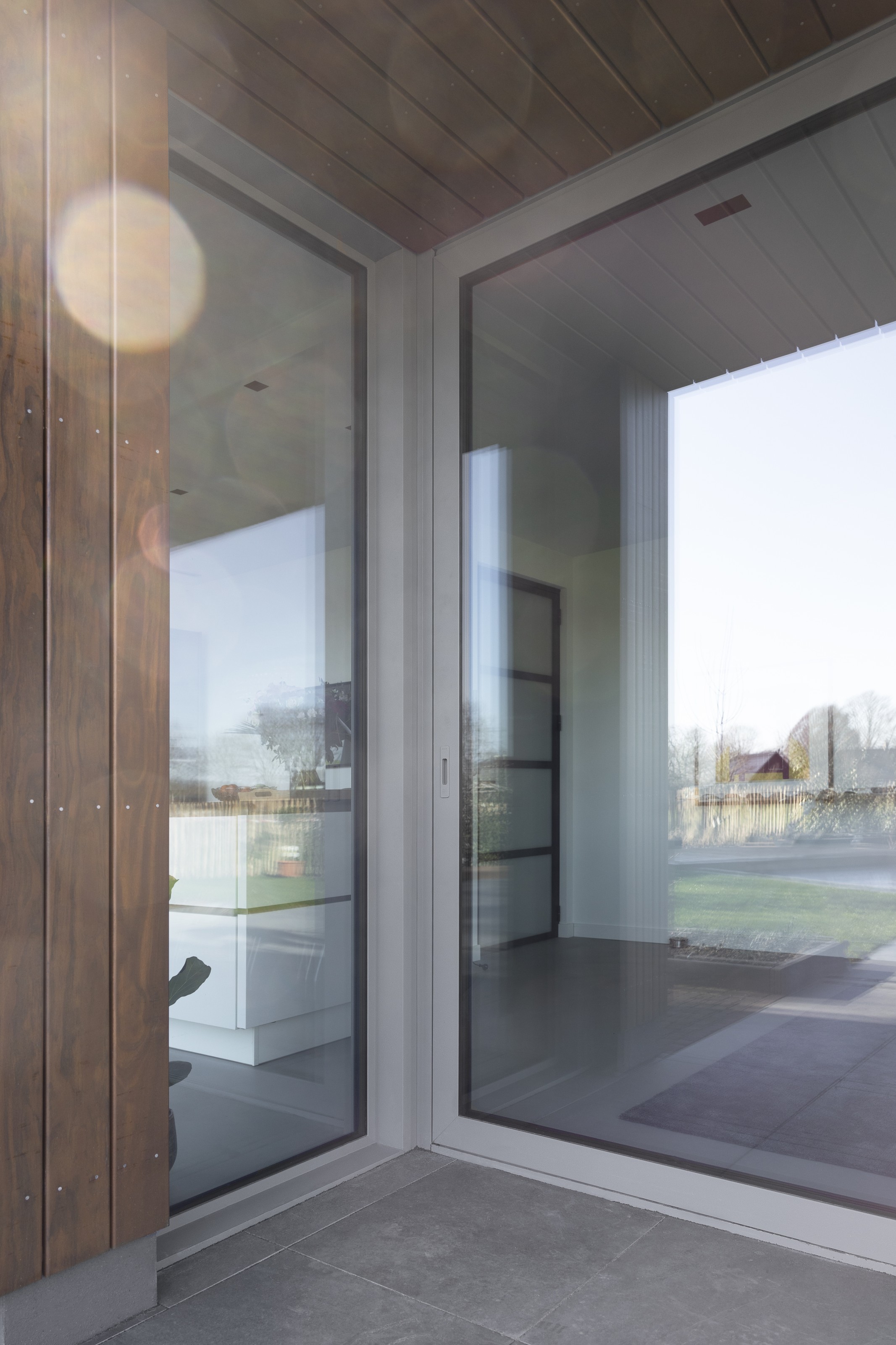 Reynaers SL38 (normale pui, smal) Reynaers CW50 (vliesgevelprofiel, entreepui en pui in woonkamer/ slaapkamer) Reynaers Masterpatio (schuifdeur eetkamer en 2x zijlicht)