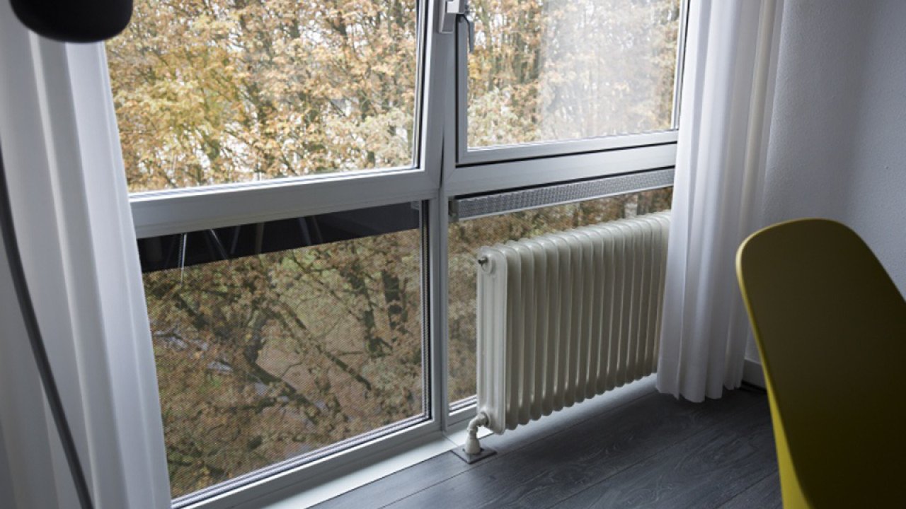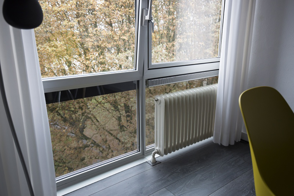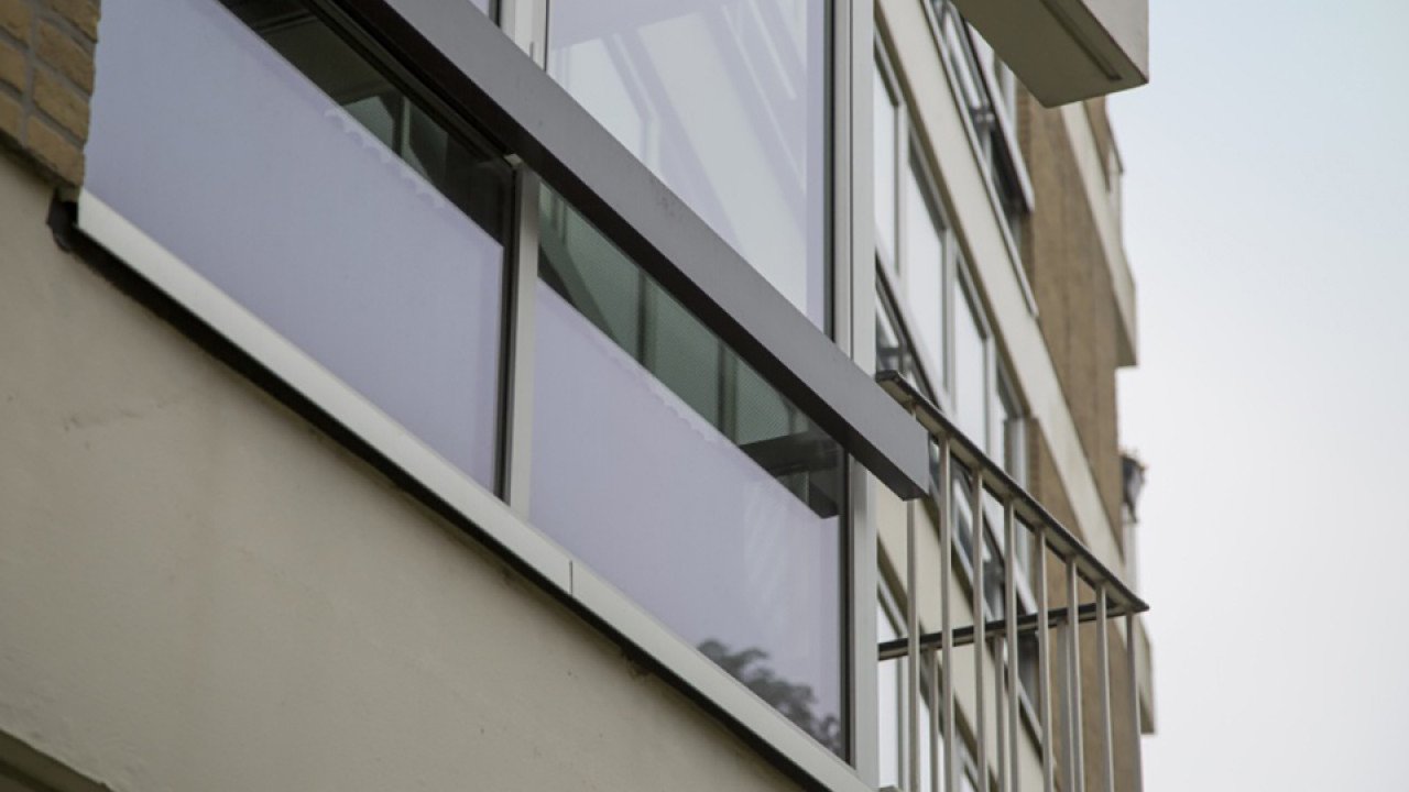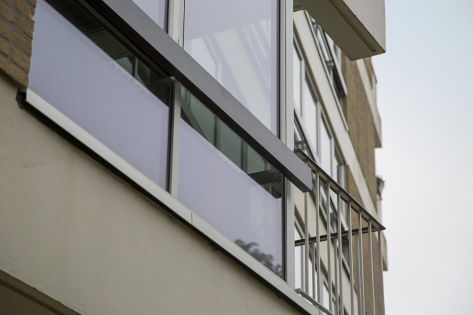 In plaats van dichte schotten als borstwering achter de radiatoren, is nu glas toegepast. Doordat dit glas is gezeefdrukt, wordt de inkijk van buitenaf verminderd en komt er wel meer daglicht de woning in. Bewoners moesten hier wel aan wennen, maar zijn er u tevreden mee. Ook hebben ze deze zomer de vermindering aan zonnewarmteinstraling positief ondervonden. Om te voorkomen dat bewoners buitenzonwering gaan aanbrengen is overal zonwerend glas toegepast.