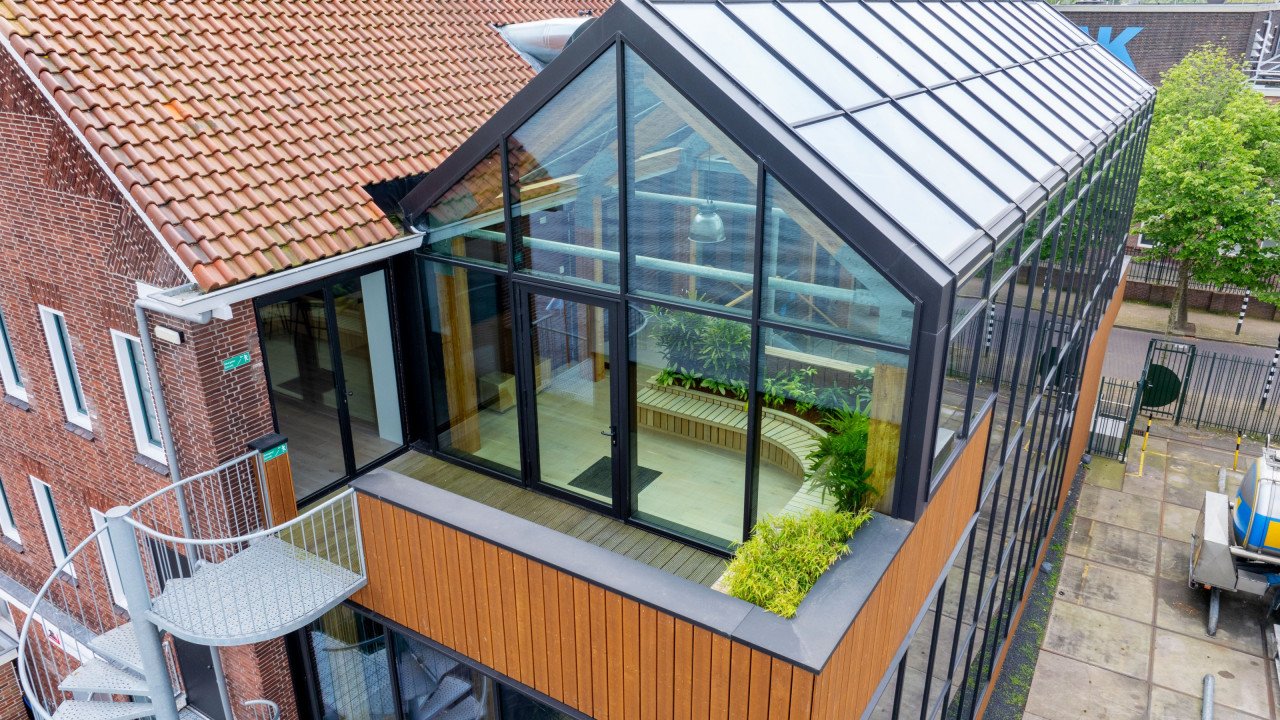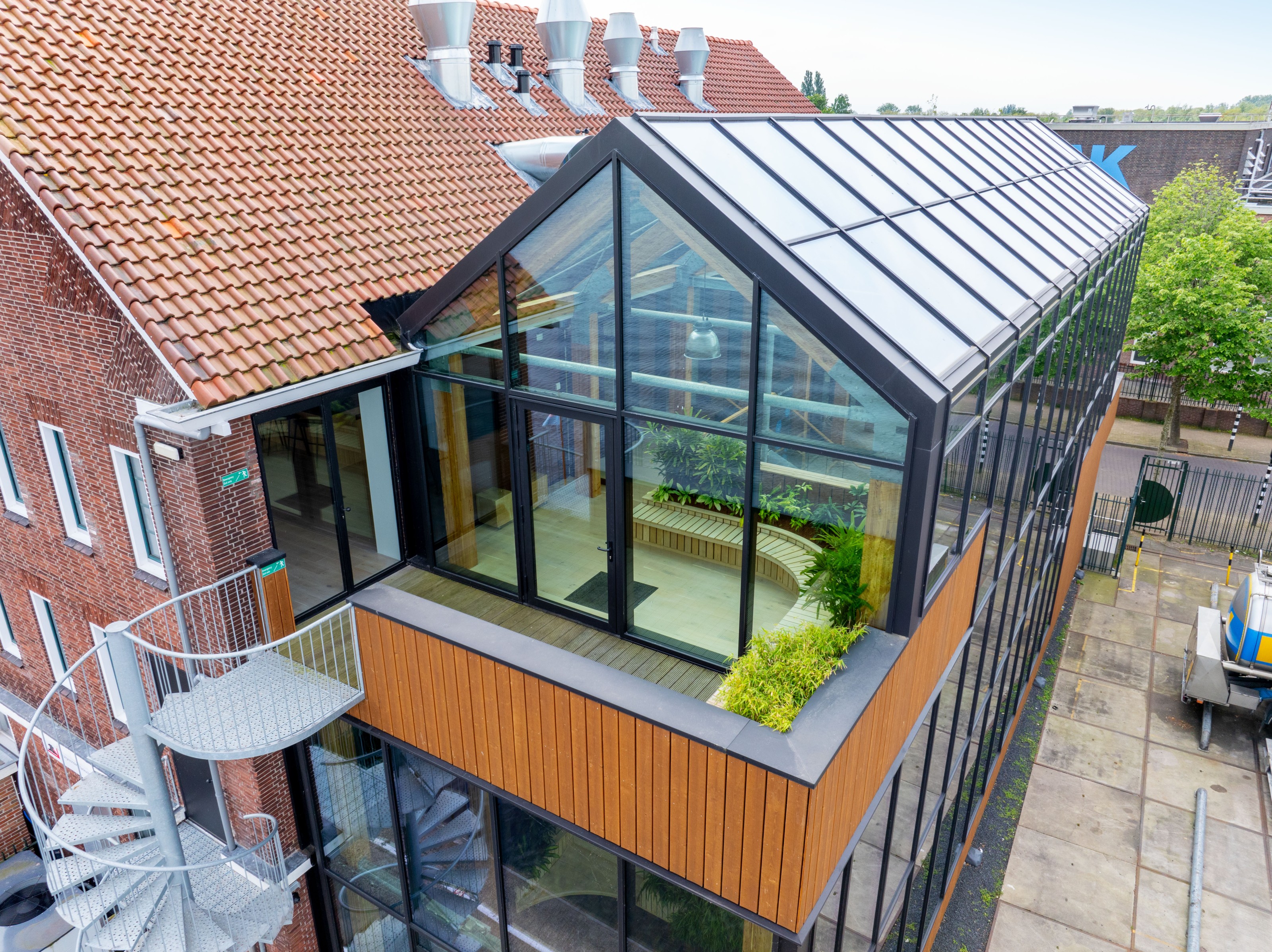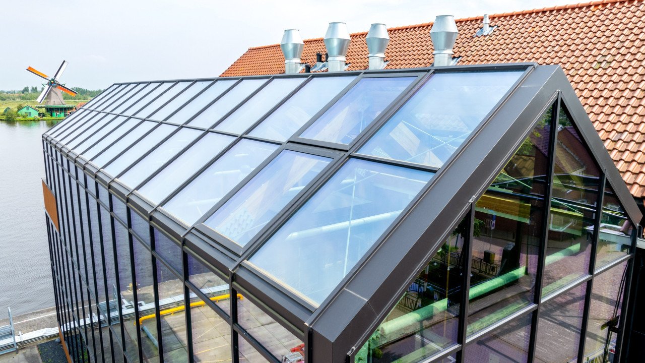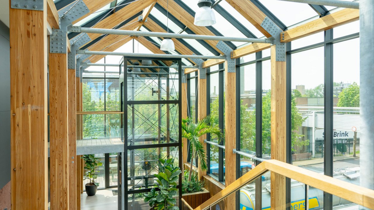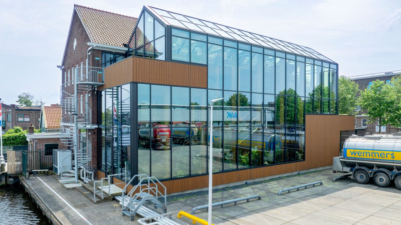 “Hollandser dan dit kan bijna niet,” vertelt Marta Roy, senior architect bij RAU. Staand vanaf de bovenste verdieping van het Plant Based Center of Excellence, kijken bezoekers uit over de meanderende rivier de Zaan, geflankeerd door een rij molens. RAU kreeg de opdracht om de oude loods te transformeren tot een innovatie- en bezoekerscentrum waar de laatste technieken op het gebied van de plantaardige voedselindustrie te zien zijn. Bovendien moest het een uitnodigende plek worden waar bezoekers van over de hele wereld overtuigt raken van de AAK-producten. Een complex vraagstuk. Roy vertelt: “Als grote industriële speler was AAK echt op zoek naar een toplocatie. Niet alleen ligt de productiefabriek pal naast het innovatiecentrum. Aan de achterzijde grenst het aan de Zaan met een subliem uitzicht over de Zaanse Schans. Het moest een plek worden waar bezoekers echt mee op reis gaan door de wereld van AAK. Een paradepaardje waar je lezingen kunt houden, kookdemonstraties kunt geven en video-opnames kunt maken. Die klantreis was een belangrijk uitgangspunt voor het uiteindelijke ontwerp.”