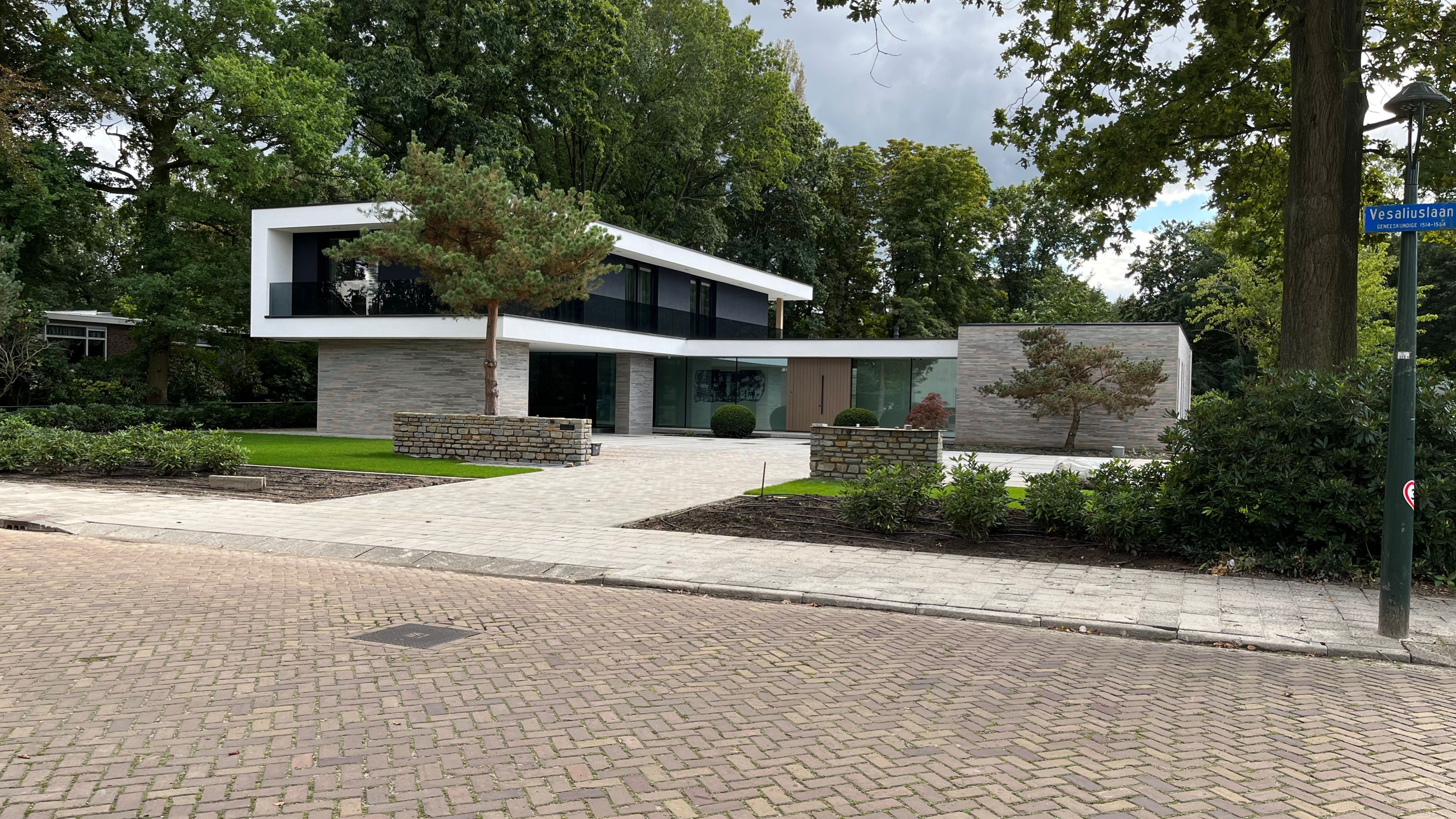 Op de plaats van een oude woning op een bosachtig perceel aan de rand van Eindhovenheeft architect Frans de Brouwer een prachtige moderne, doch tijdloze woning, ontworpen. Daarbij zijn grote glasvlakken met structurele glasnaden toegepast en zijn de profielen zoveel mogelijk bouwkundig weg gewerkt. Het resultaat is een woning met prachtige en lichte leefruimtes van waaruit de blikken op de tuin ruim en wijds zijn.