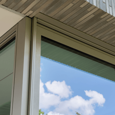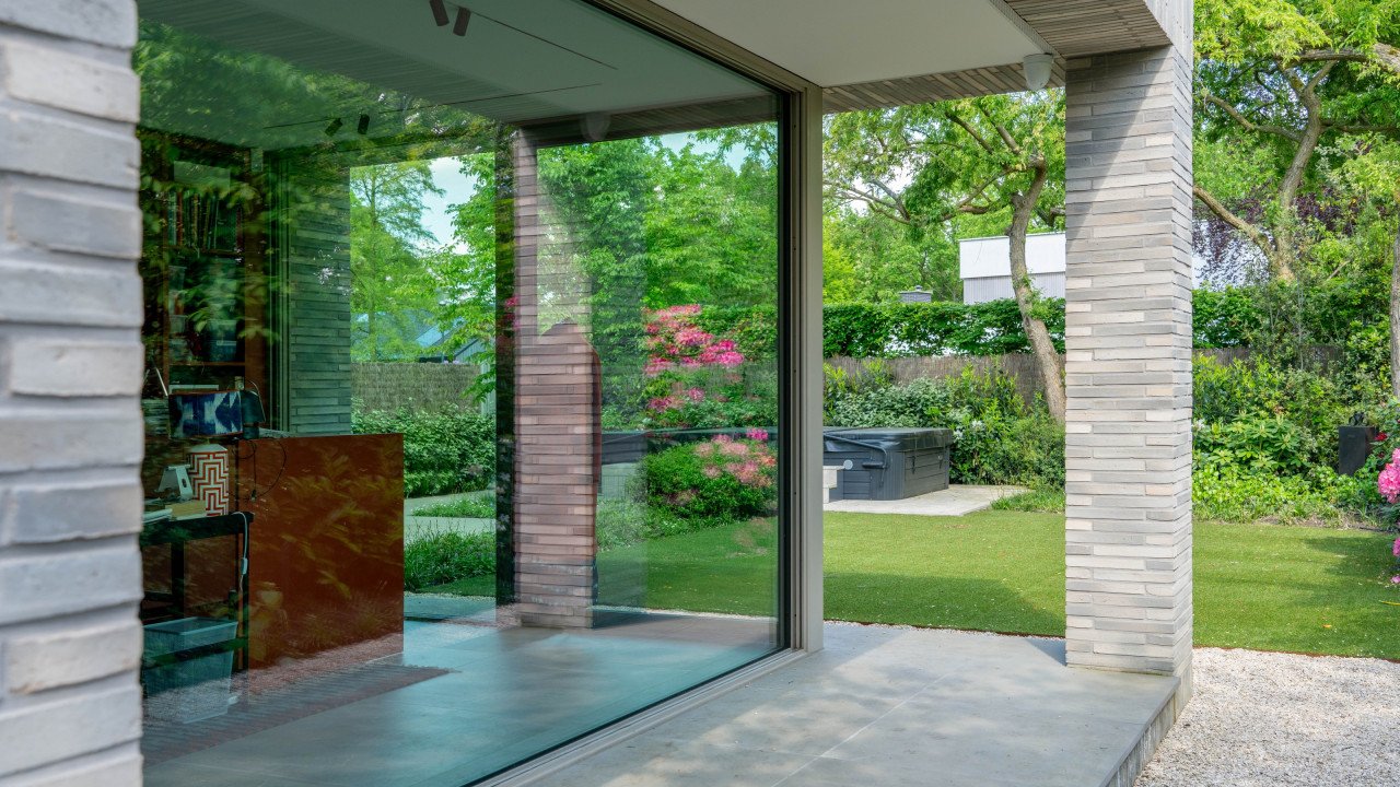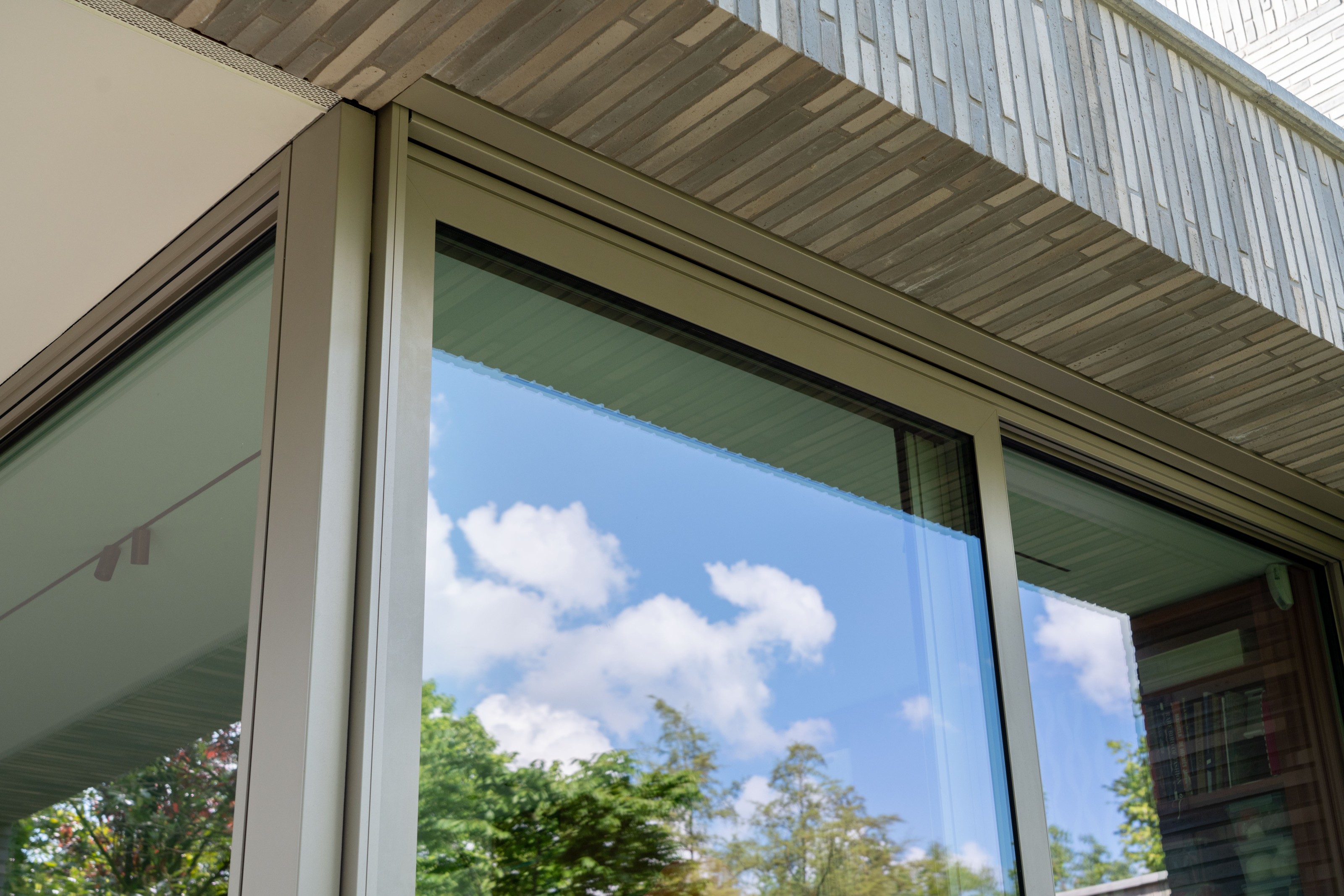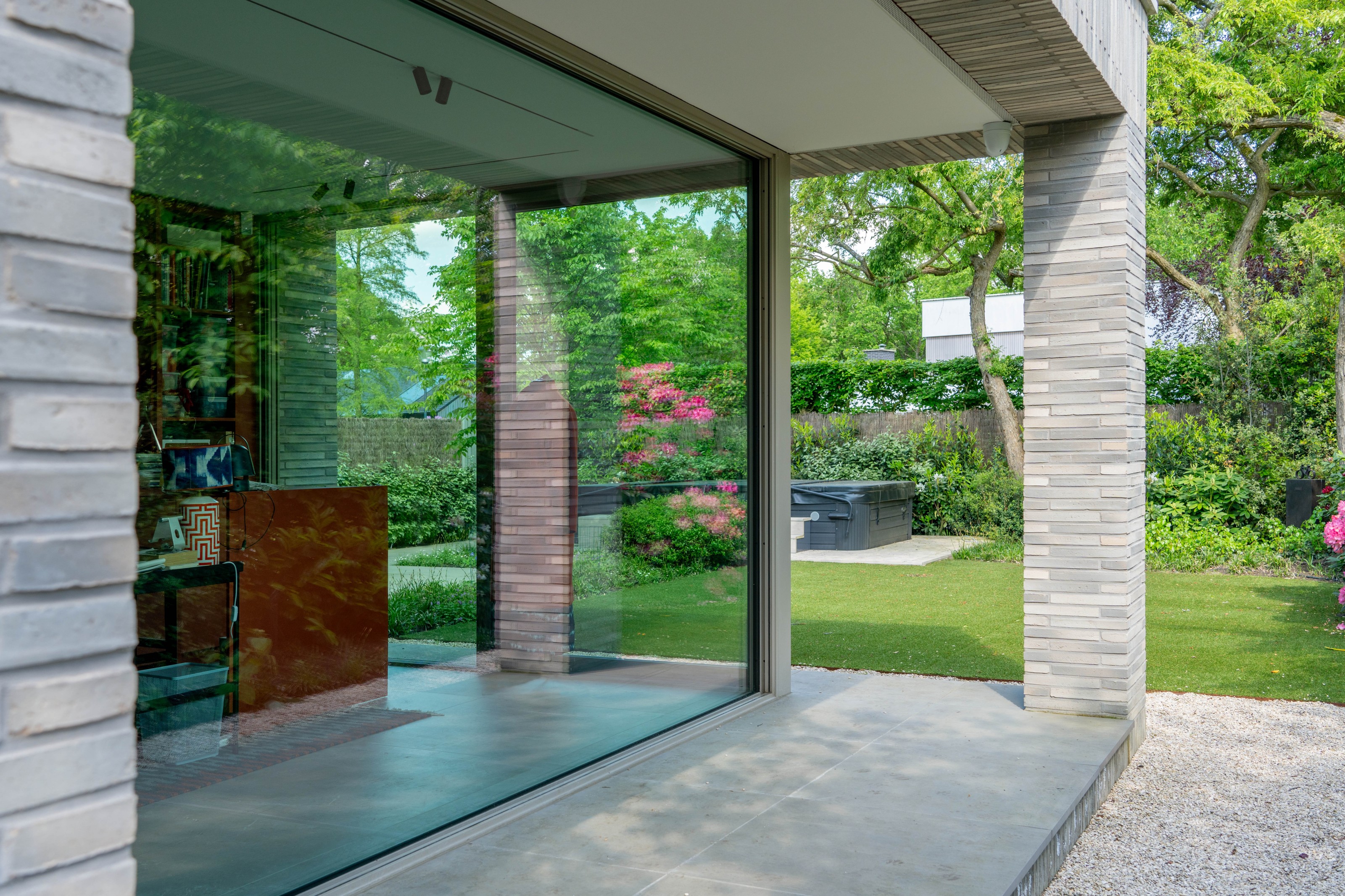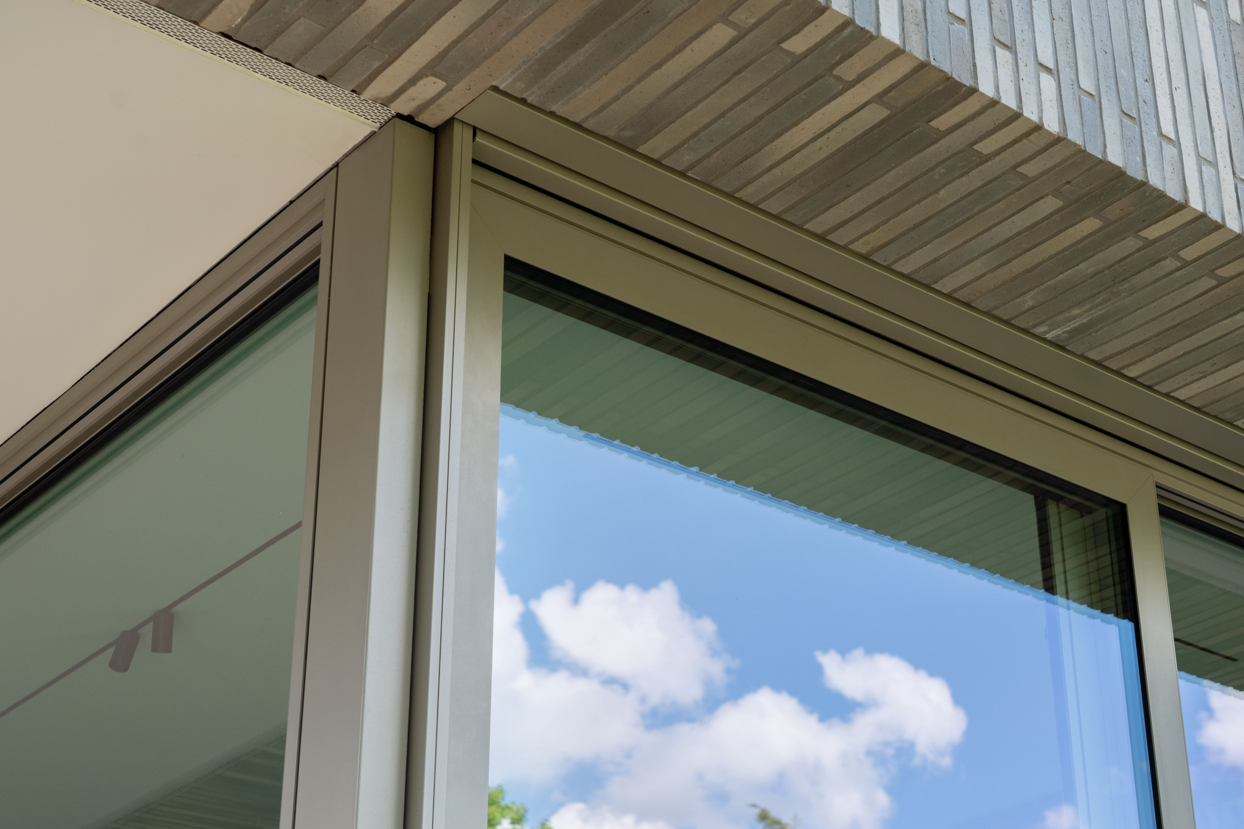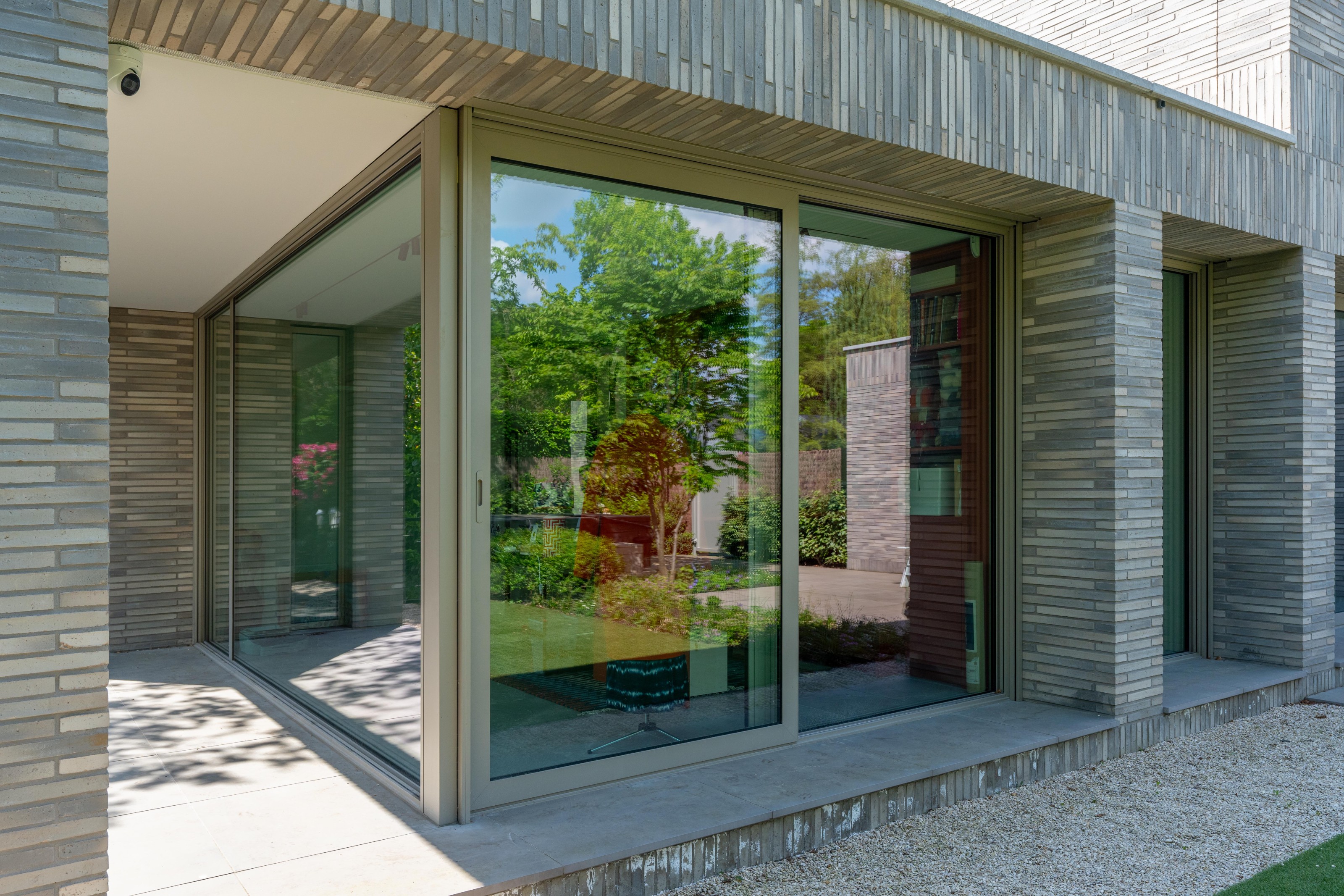 Voor een optimale ervaring van het binnen-buitengevoel zijn de juiste kozijnen van groot belang. Bekkers koos in samenspraak met gevelbouwer Thermal bij dit project voor het aluminium raam- en deursysteem SlimLine 38 van Reynaers Aluminium. “Ik houd van de strakke profilering en minimalistische vormgeving van deze kozijnen. Bij dit project is het echter niet het kozijn dat de show steelt. Het moest juist eerder onopvallend aanwezig zijn. Bij Villa HAY wil je dat binnen en buiten goed in elkaar overlopen. Wij detailleren de kozijnen dan weg. Door de strakke en ranke vormgeving lukt dat met de Reynaers-profielen uitstekend. We zochten lang naar de juiste kleur. Uiteindelijk kozen we voor een zandkleurig profiel met textuur. Wanneer hier een standaard vlakke kleur op zou zitten, was dat een gemiste kans voor het ontwerp. Ook hier maken de details het grote verschil.”