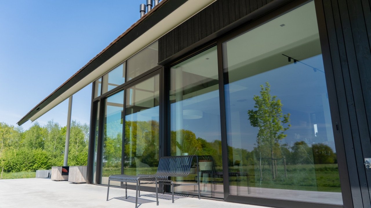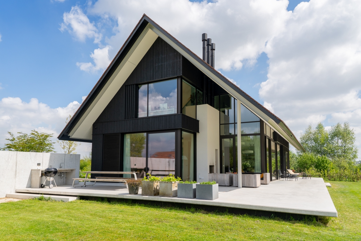 Bij Villa de Hoefsevonder in Berlicum zijn wonen en buitenleven onlosmakelijk met elkaar verbonden. Architect Annemariken Hilberink en haar team bedachten een constructie waarbij een glazen pui van 6 meter zorgt voor een optimale beleving van het landschap. “Deze woning is vanuit iedere hoek spannend.”