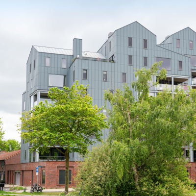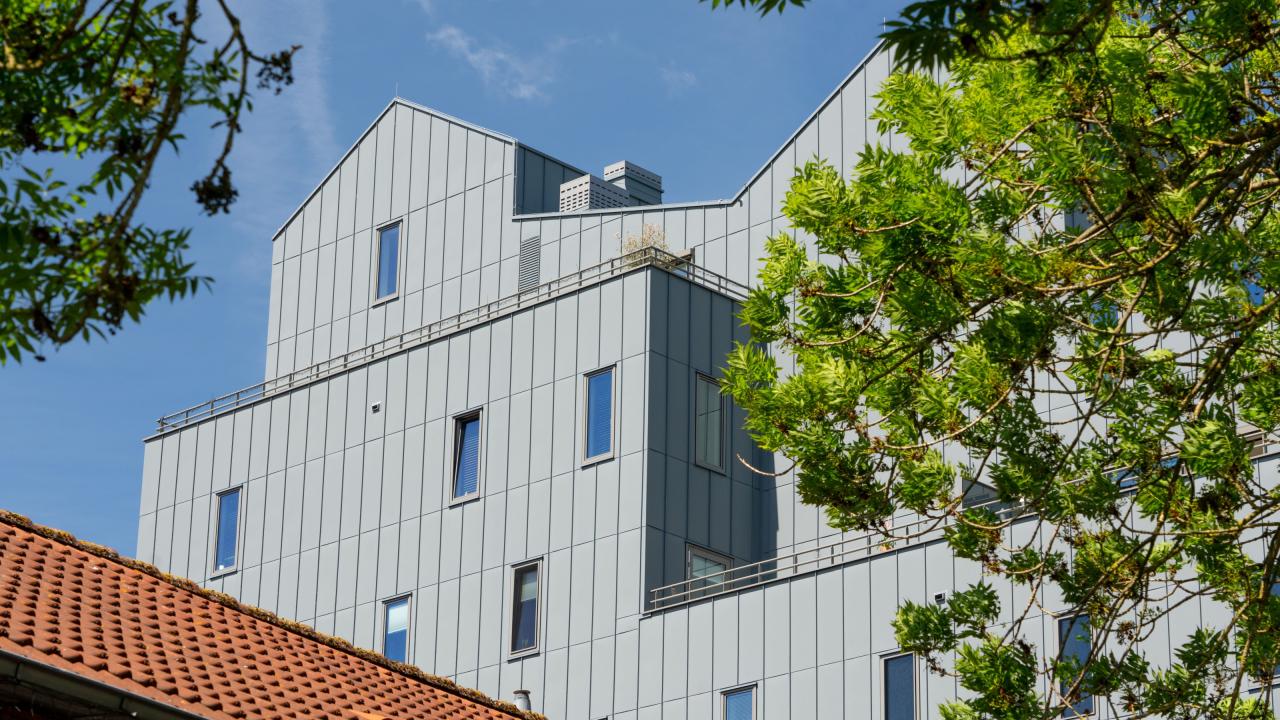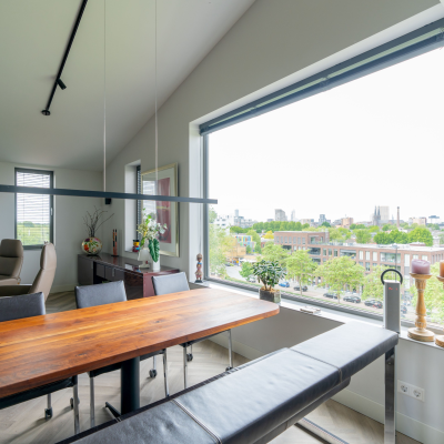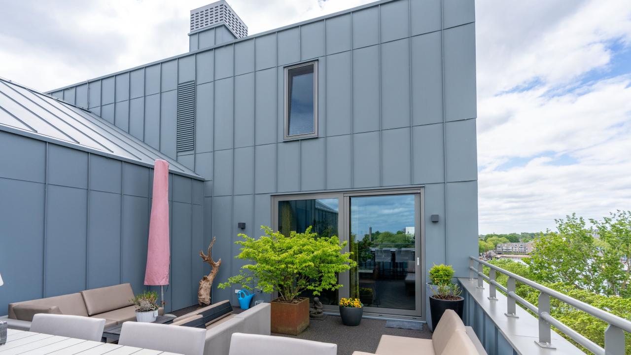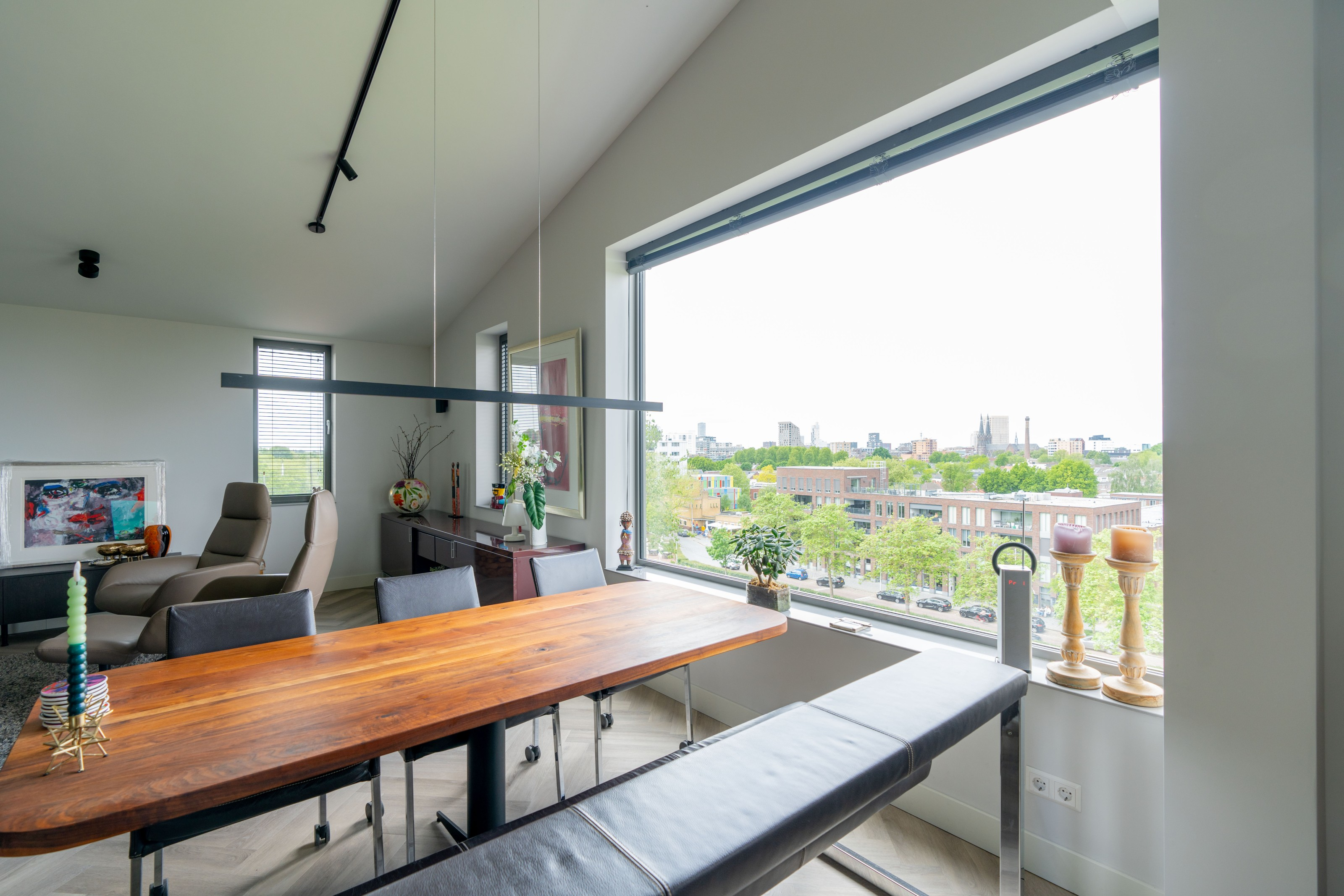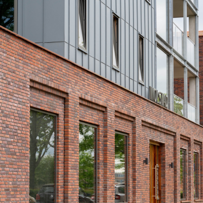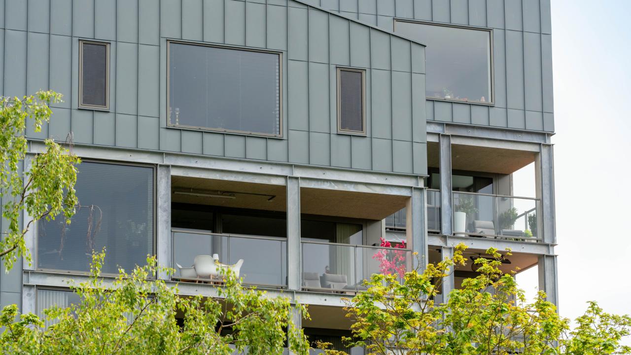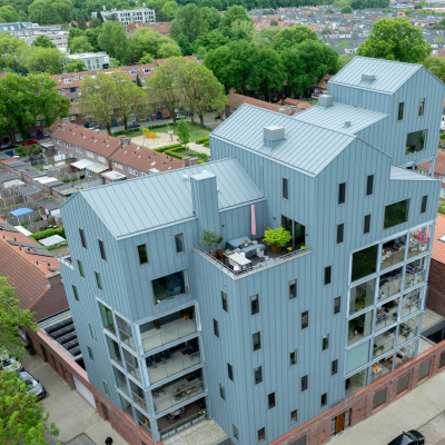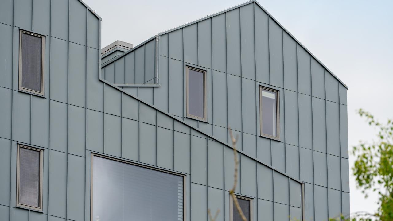 De overgang tussen de plint en bovenbouw is uitgesproken – en technisch complex. “Je werkt met totaal verschillende systemen. Steen versus metaal. Maatverschillen, werking, waterhuishouding: alles moet kloppen. En er zit nauwelijks speling in,” legt Van der Hamsvoord uit. De samenwerking met aannemer Heerkens van Bavel Bouw en gevelbouwer Van Hoesel Aluminium was hierin essentieel. “Zij namen het ontwerp echt serieus,” vertelt Van der Hamsvoord. “Er zijn details waarbij de tolerantie onder de centimeter lag. Normaal heb je op zo’n schaal wat marge, maar hier moest alles precies aansluiten. We staken veel tijd in het uitwerken van de details. Nog belangrijker: we verzamelden mensen om ons heen die het ontwerp snappen. Die de precisie willen leveren die het vraagt. Dat is niet altijd vanzelfsprekend in de bouw.”